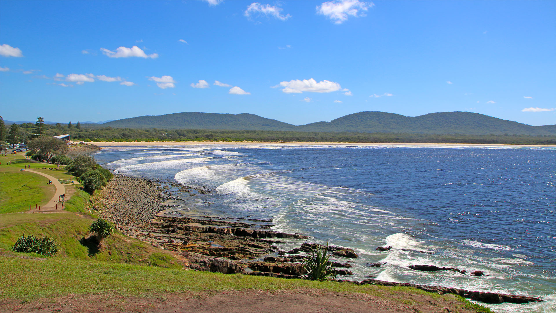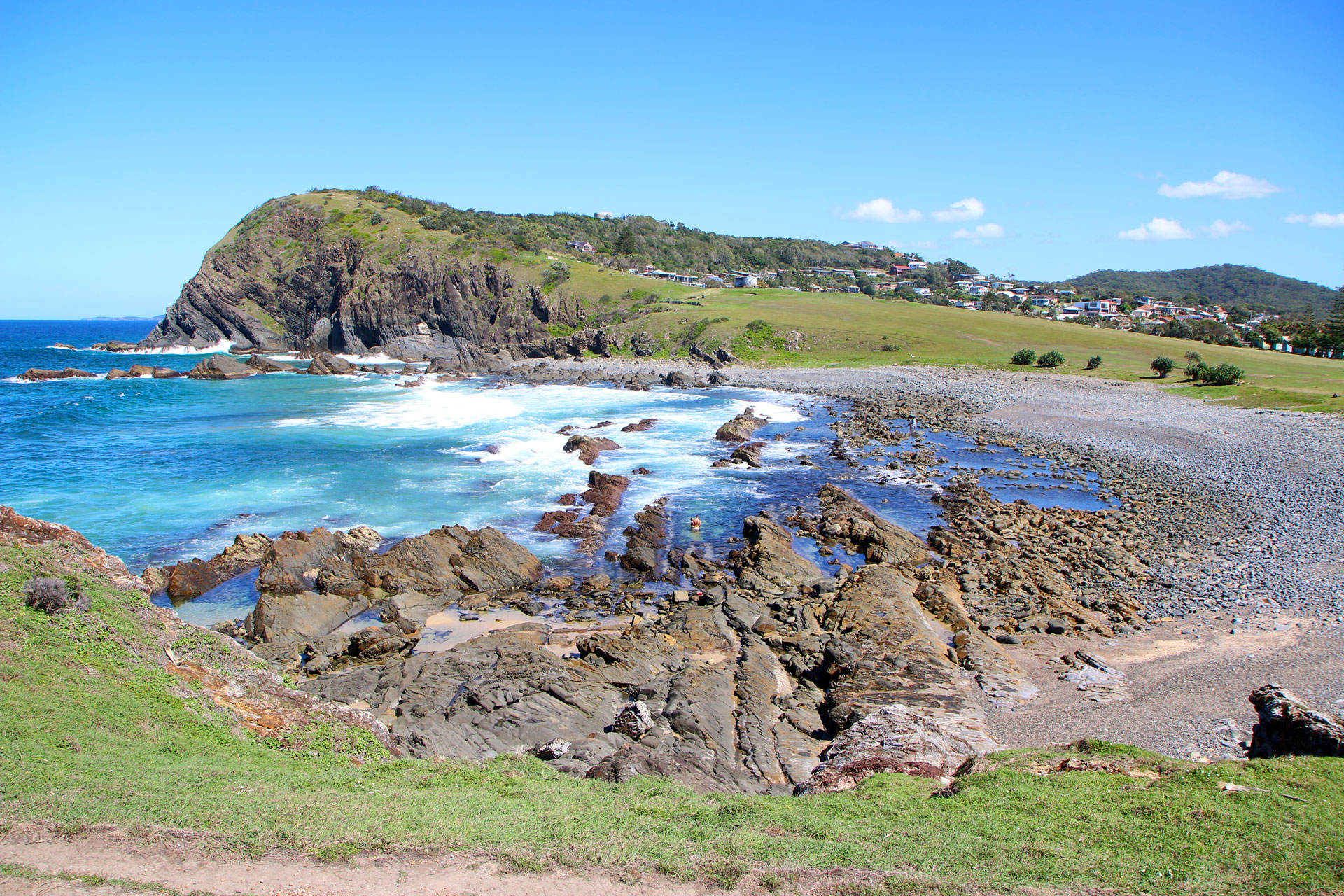 Bronwen and I left around 9:30 AM, stopping in Crescent Head along with the ATA people to get some breakfast, and then leaving Crescent Head at 11:20 and driving 92 km (1 hr 8 min) to Nambucca Heads, where we stopped for lunch at the V Wall, and had a quick look at the beach and the wall.