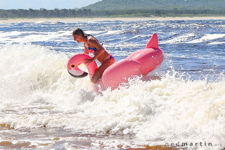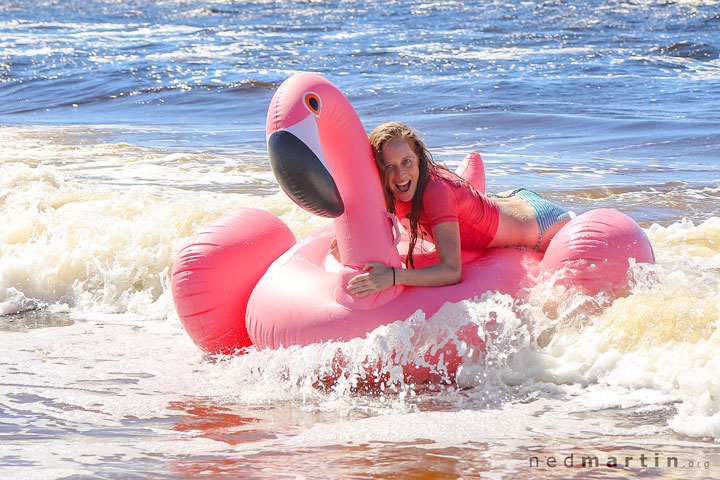 After lunch—it being Easter—we all drove to Crescent Head so people could race their inflatable flamingos and unicorns.