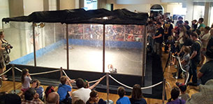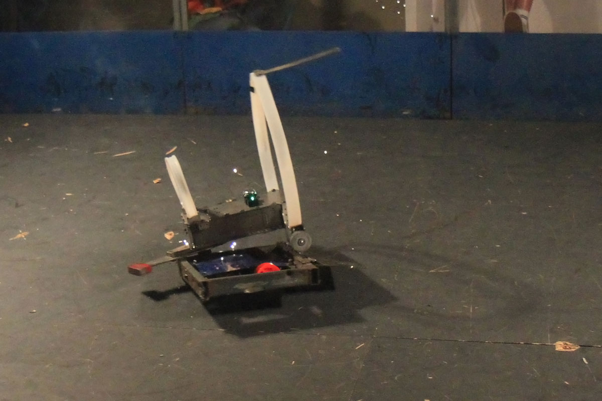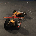 Bronwen and I got up relatively early, and drove out to Ipswich to see the robot wars again. We managed to arrive just after half past ten, and they were just starting the first fight of the day—now into the beetleweight (1.36 kilogram) category. We stayed until the finals of the featherweight (13.6 kilogram) category—which was a surprise win to Roadkill, a remarkably strong, but relatively dangerous, robot.