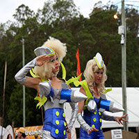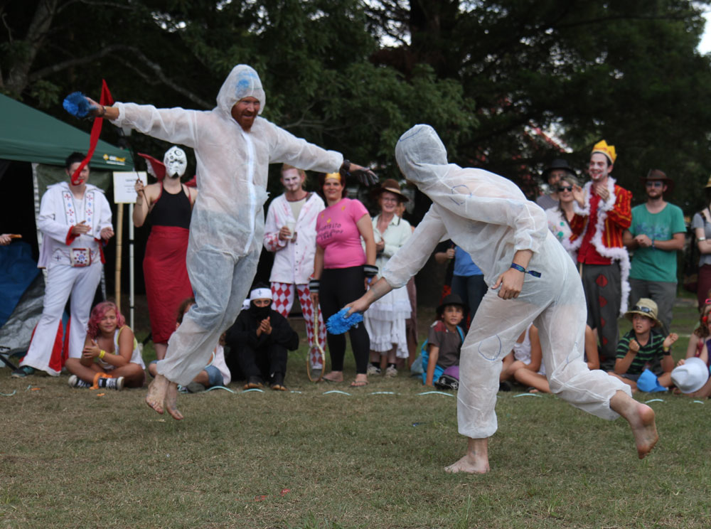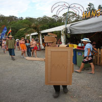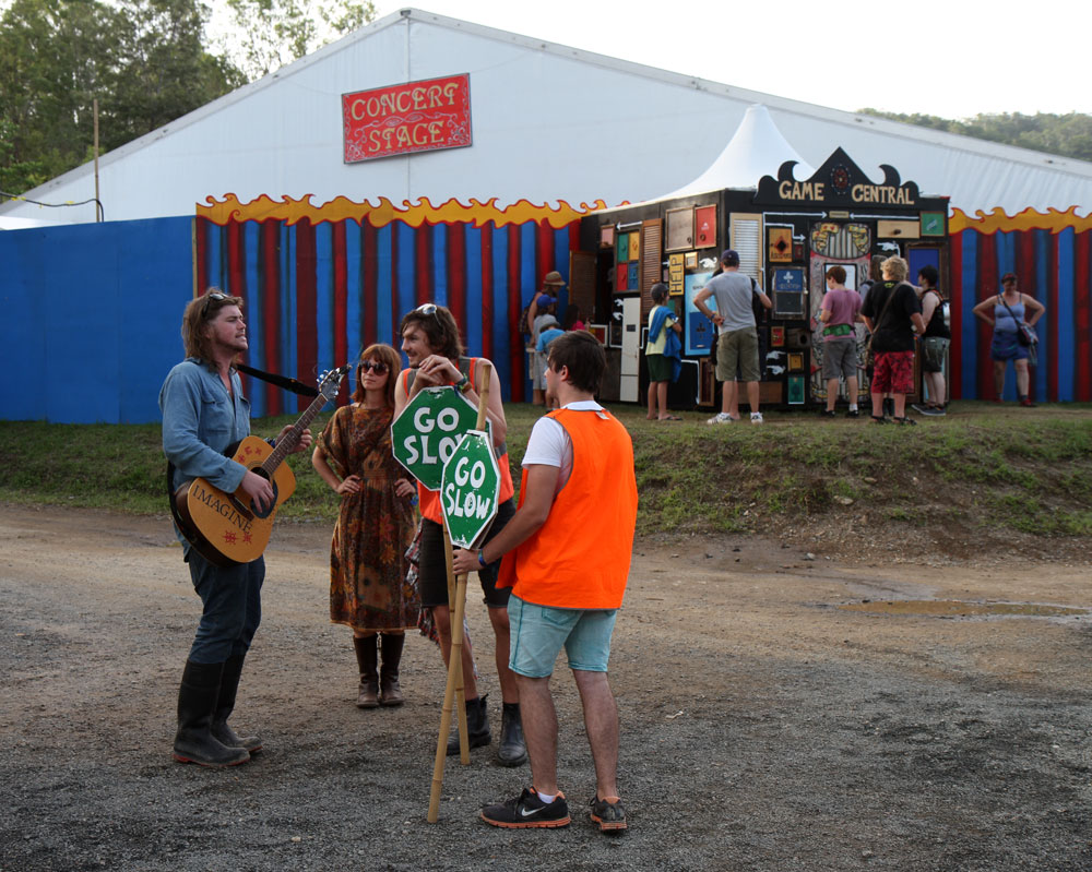 After making camp we headed down into the not-yet-open festival, found Bronwen’s “Game HQ”, had a look at the festival shop (which, along with everything else, has moved and changed slightly—none of the people running it has had anything to do with it before, and they’ve switched from using a customised Filemaker shopfront to a not-very-customised and far more cumbersome MYOB one). I attended my training, Bronwen and I milled about, and eventually went to bed, having quite a good sleep.