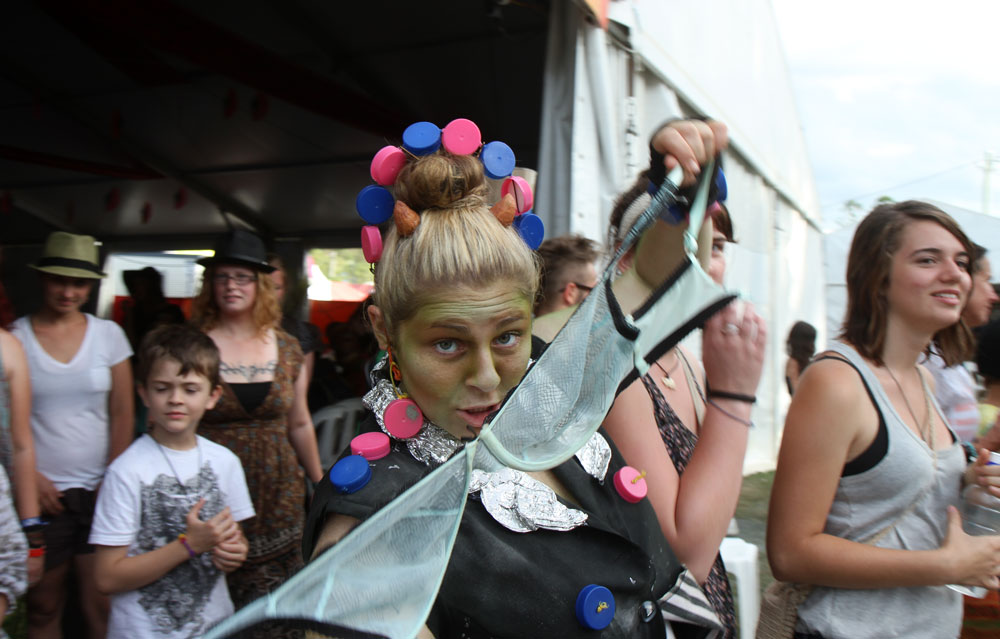 I had curry for breakfast and met Bronwen after, going to see a banjo circus at The Palace with her, then getting nachos for lunch. Amusingly, there is a “Vaccination saves lives” banned being flown over the festival by a plane—probably the most anti-vaccination place in Australia right now.