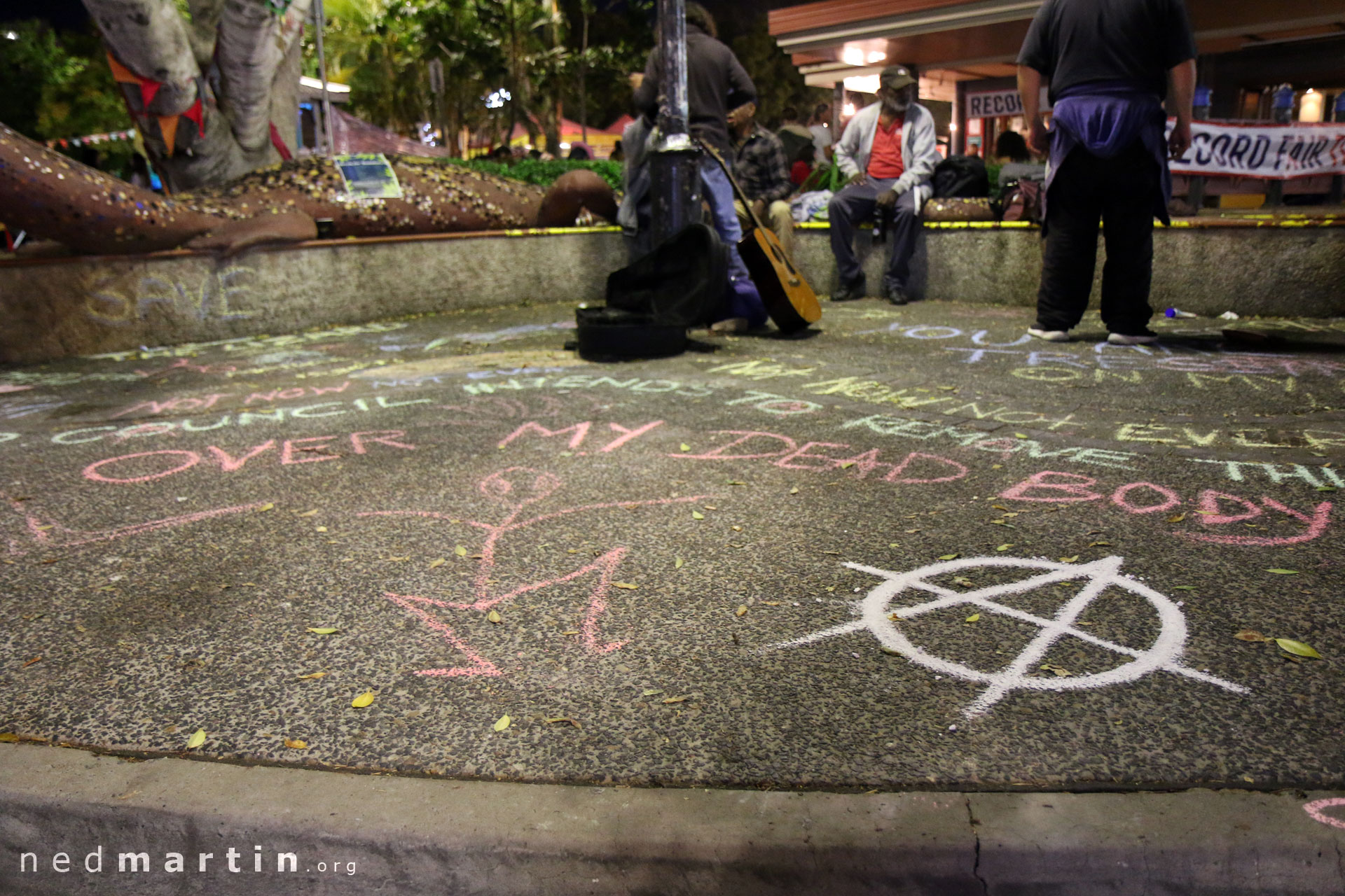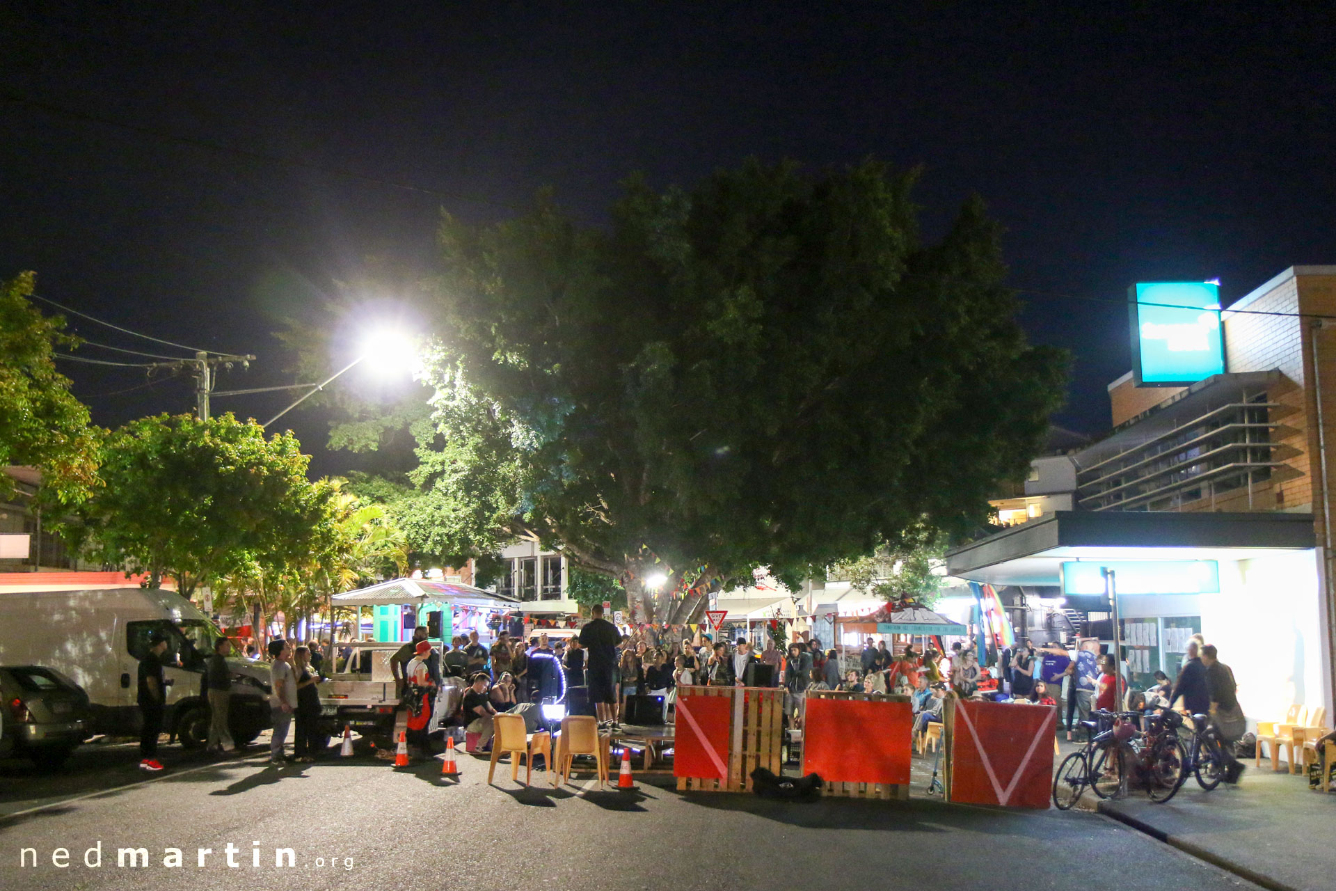 After acro we drove to Boundary Street and had a look at the Break the Boundary: Save the Fig “protest” (which really wasn’t a protest, as it was actually a small road closure with a couple of small music stages and some stalls, and—unlike last time when they were shut down by the police and it all went horribly wrong—they’d got the appropriate permissions and everything was fine).