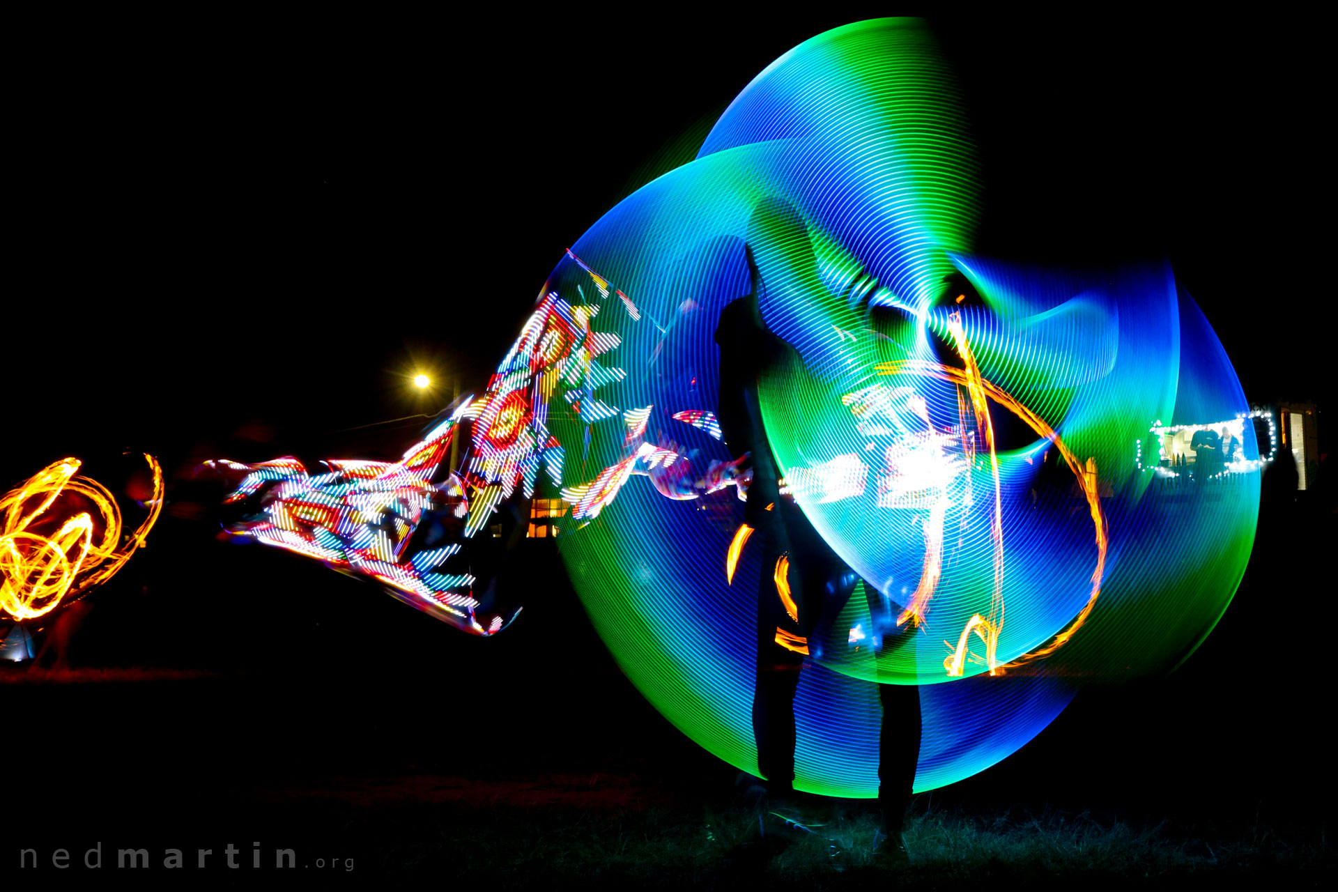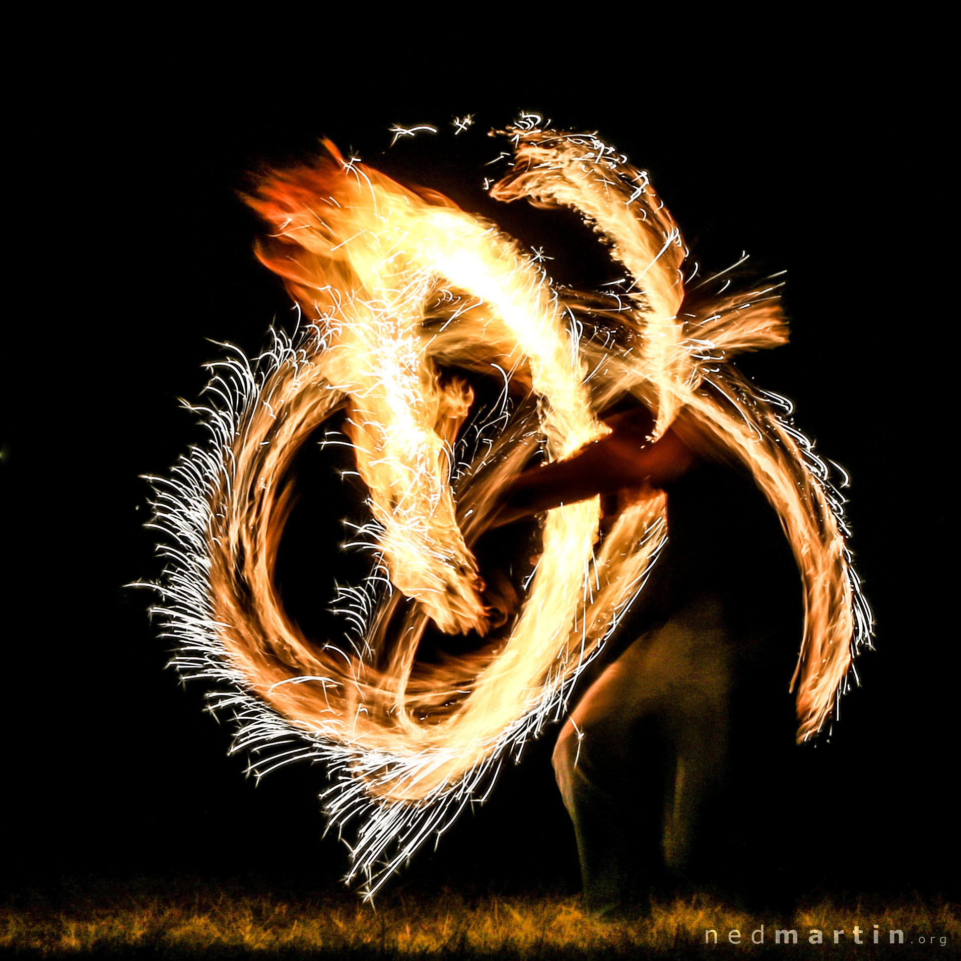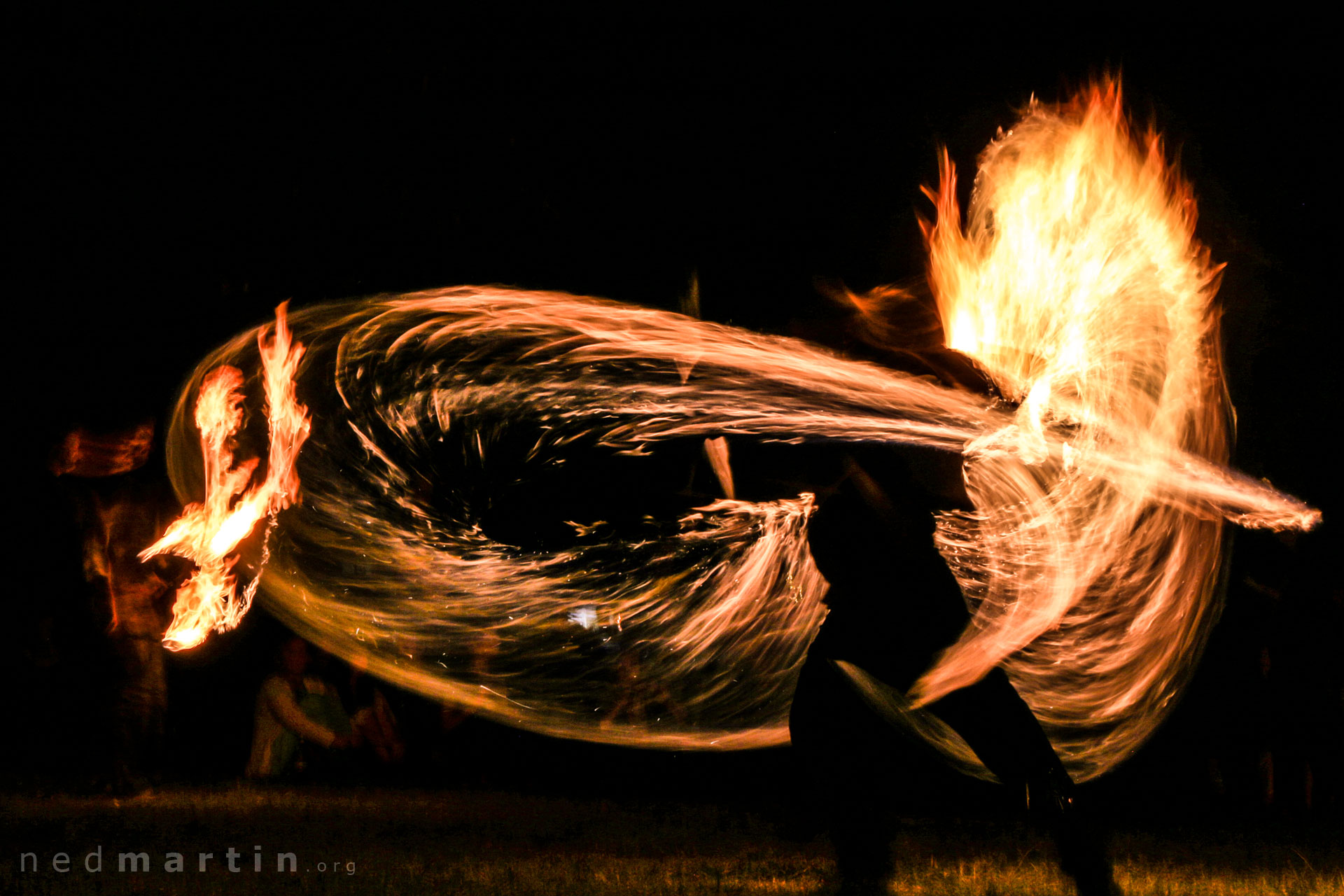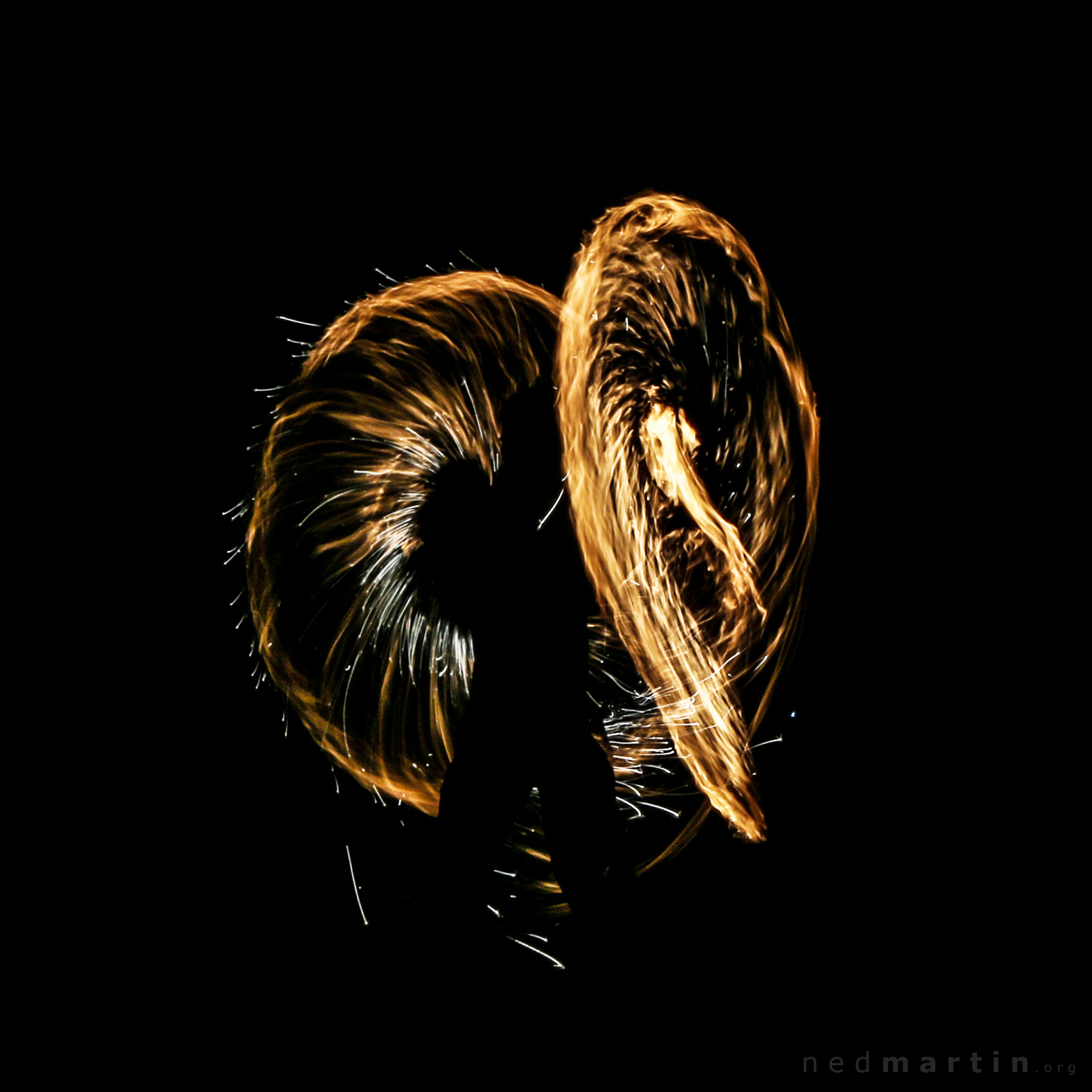 After popping back to Coles to buy some carrots and dips, we drove to Orleigh Park and the West End Fire Festival. There were quite a few people fire twirling, hooping, and burning things tonight.