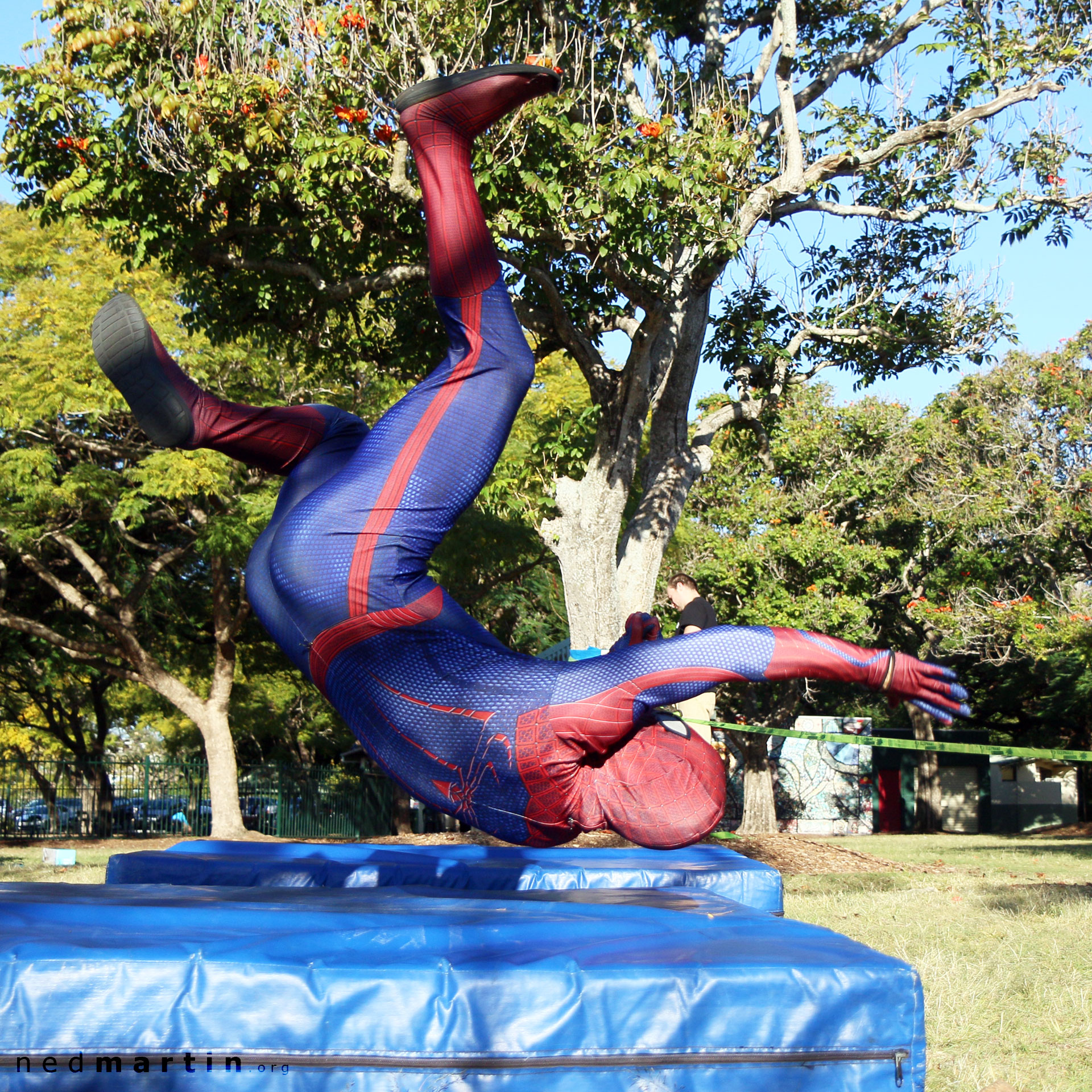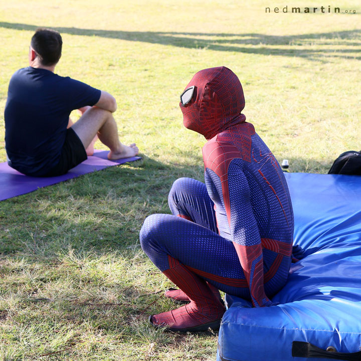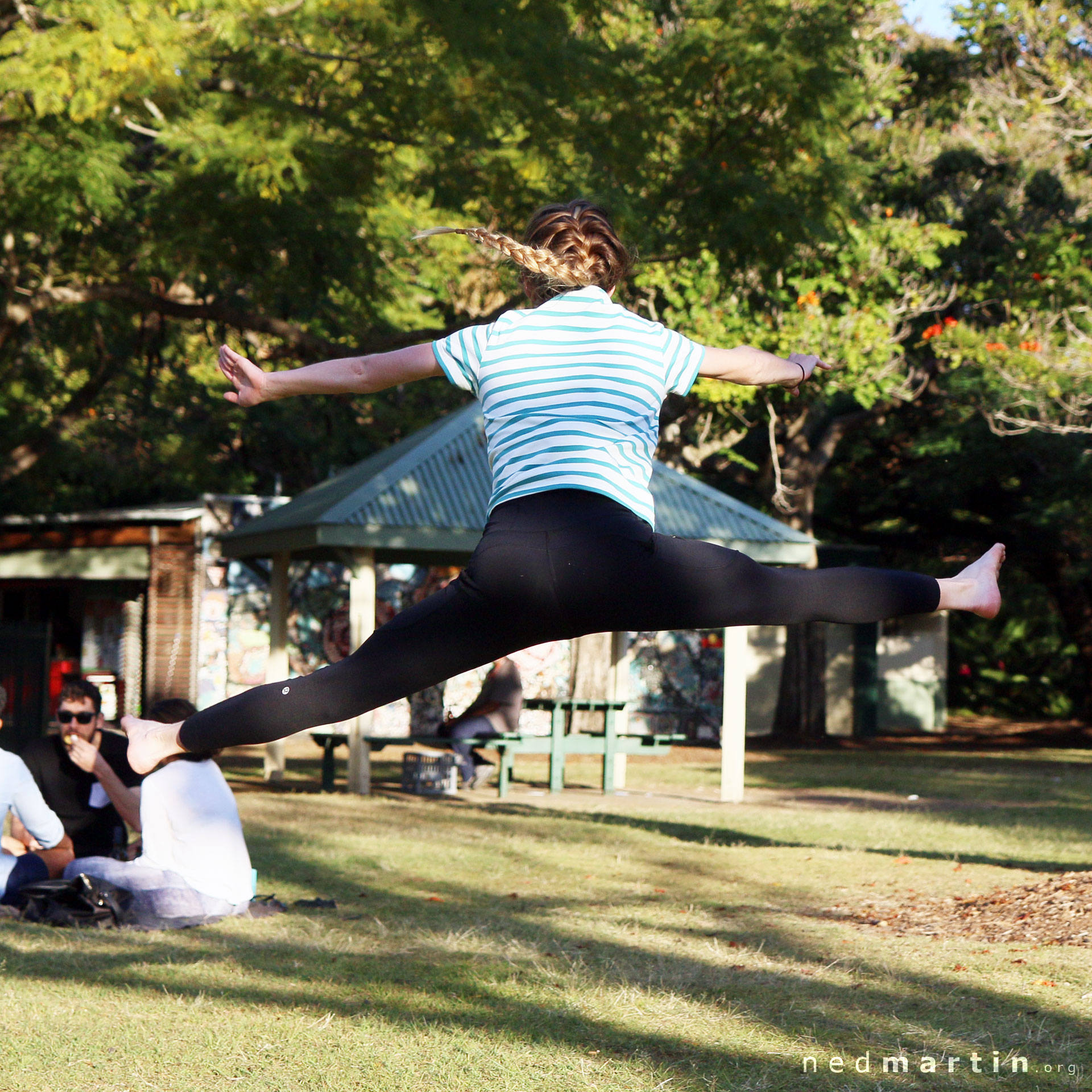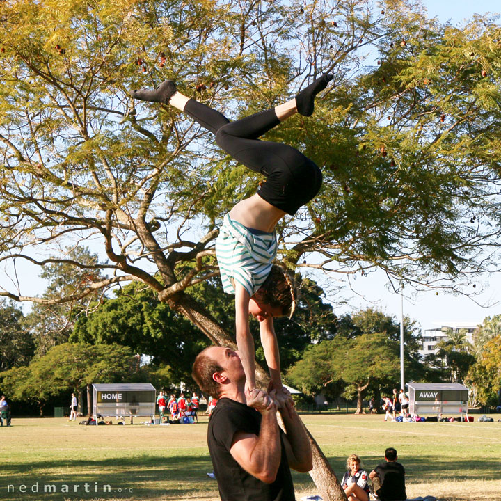 Bronwen and I drove into New Farm Park, where Bronwen did acro and I took photos. I wasn’t very enthused, though a Spiderman did turn up at one stage which was exciting.