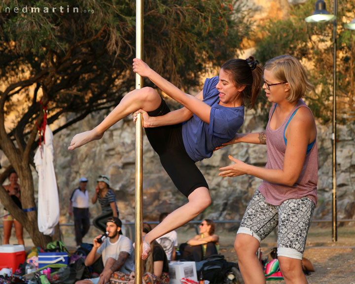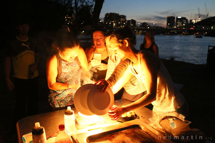 After my sushi I drove to Kangaroo Point Cliffs—where I amazingly managed to find parking down the bottom—and took some photos of Sophia and her friends doing “all the things”—they even had a portable pole-dancing pole. I ate both rainbow cake and chocolate mud cake.