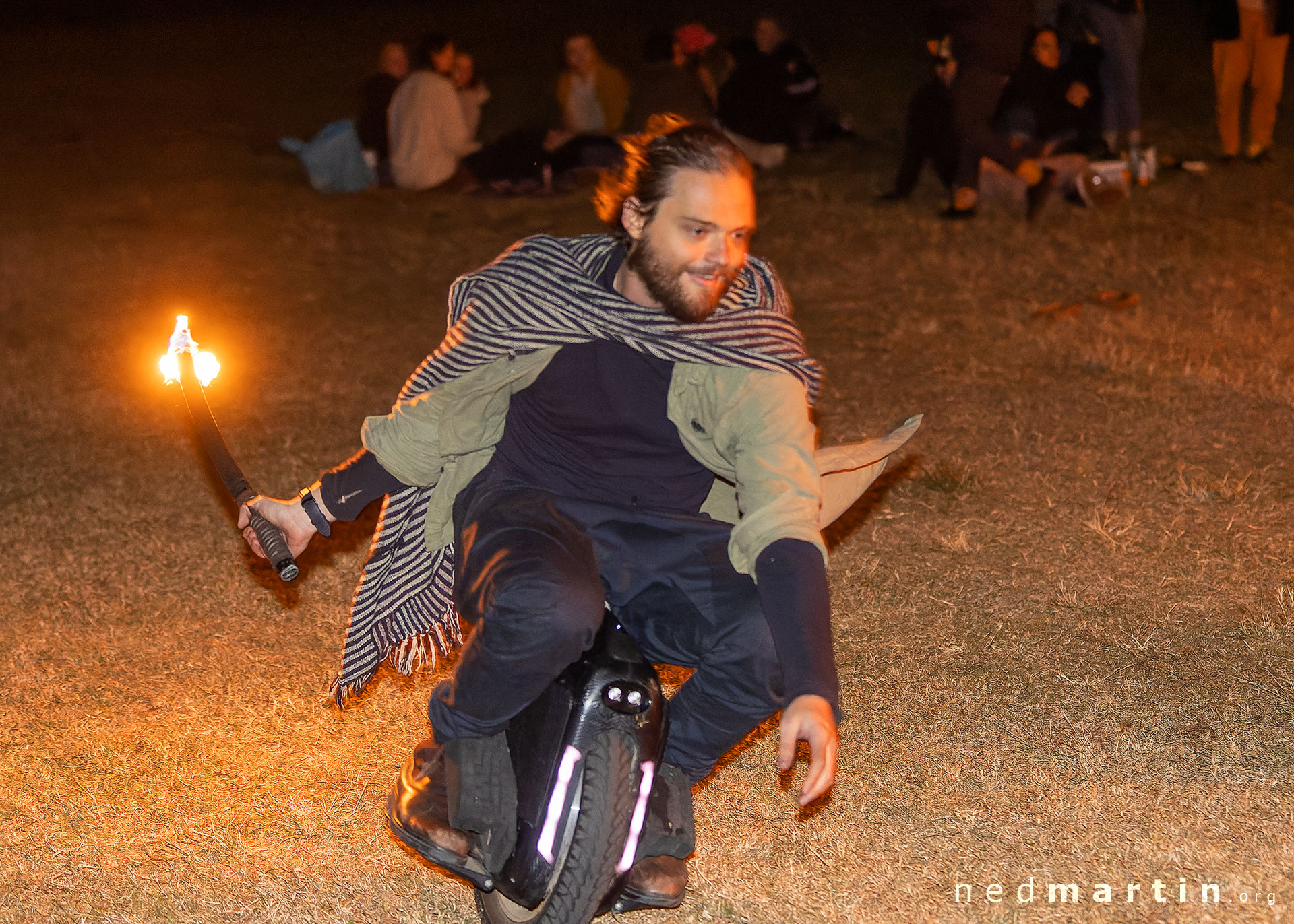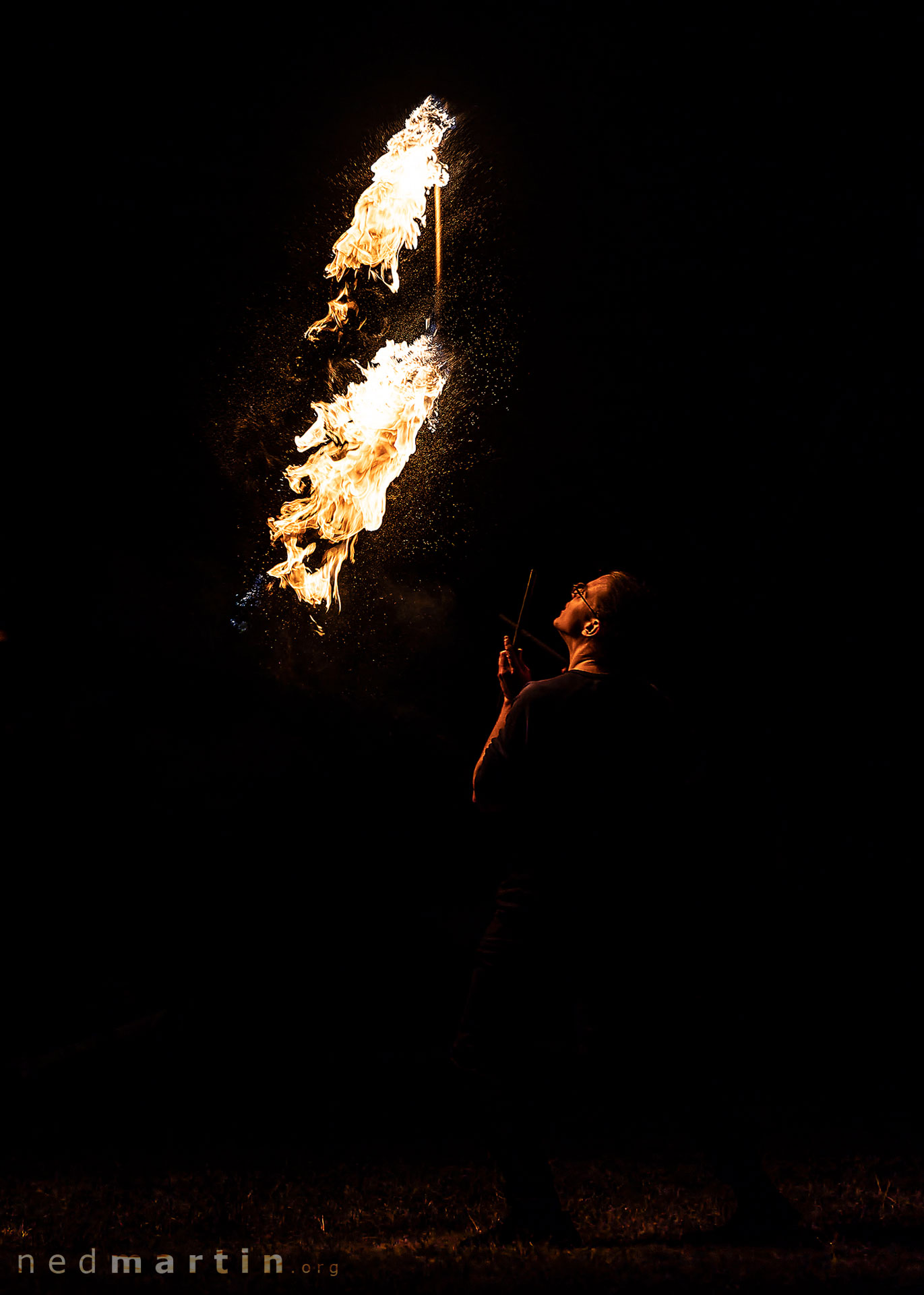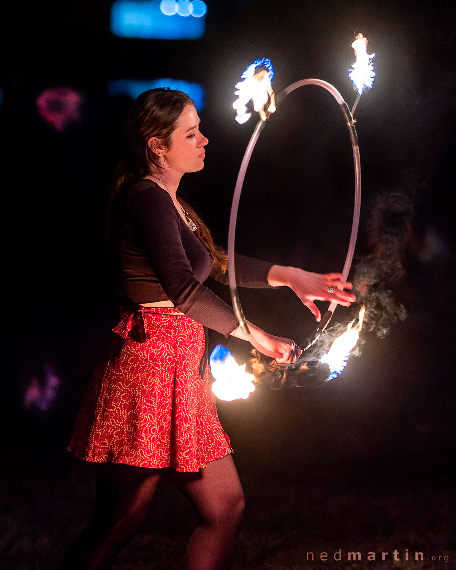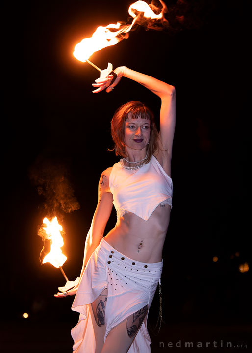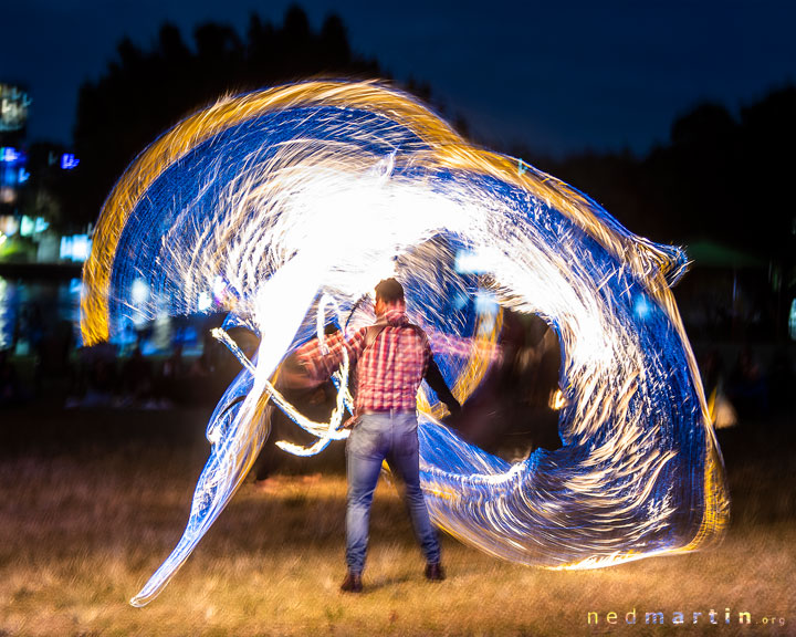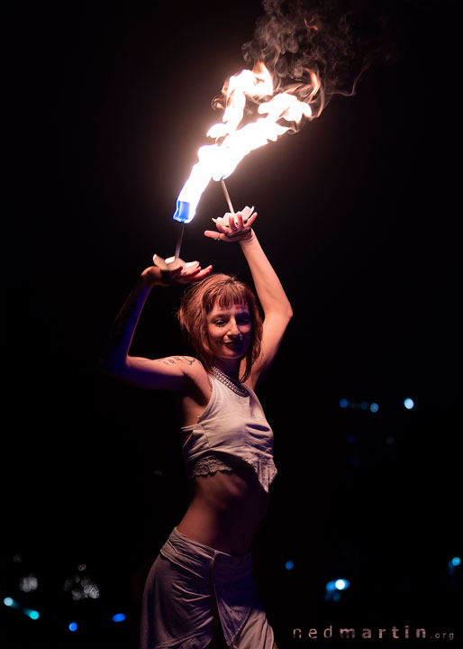 Bronwen, Chloe and I drove to Woolworths, bought a pesto pasta dinner, then continued on to Orleigh Park where we ate our pasta dinner while watching the West End Fire Festival. I took some photos, as usual. It was quite cold.