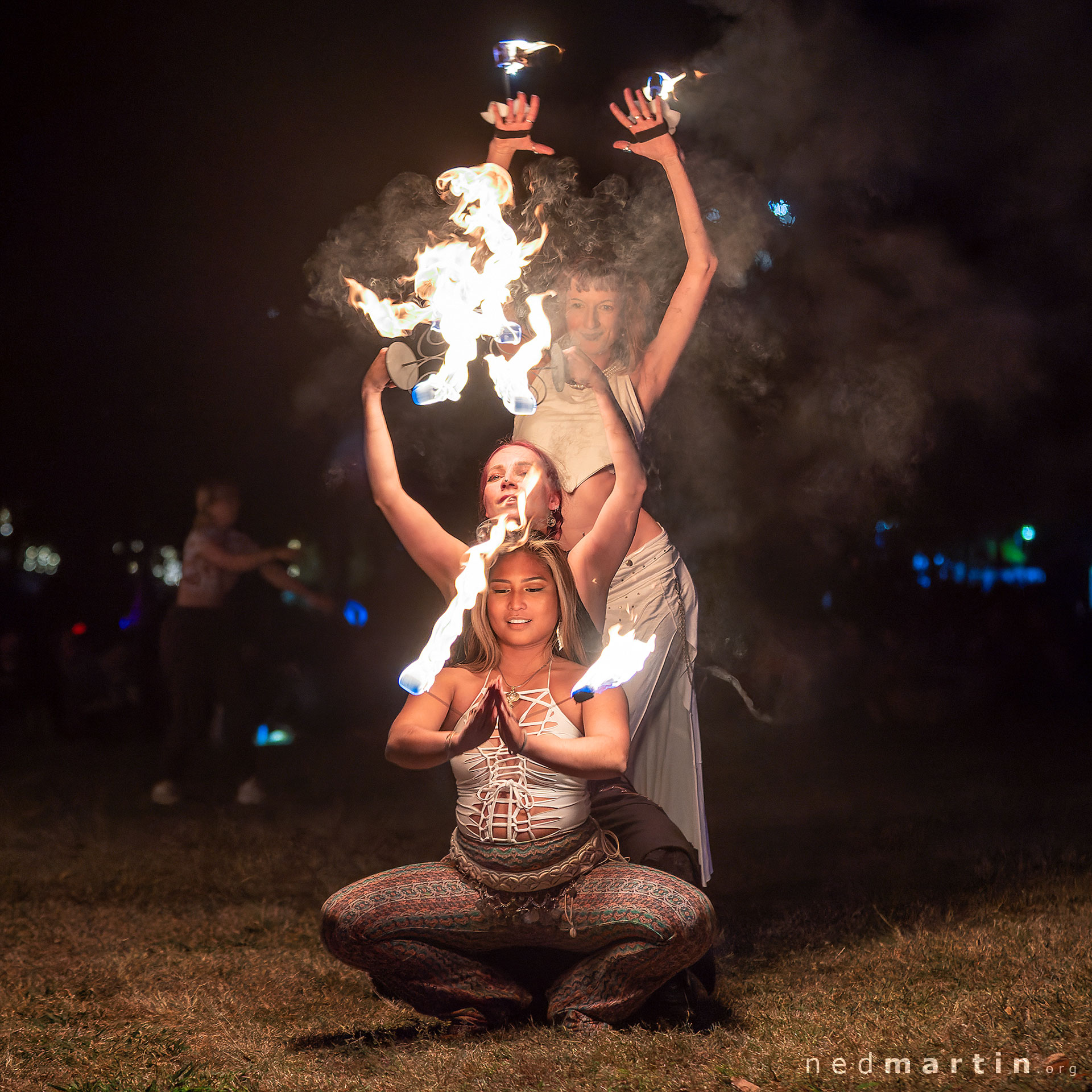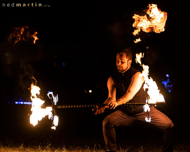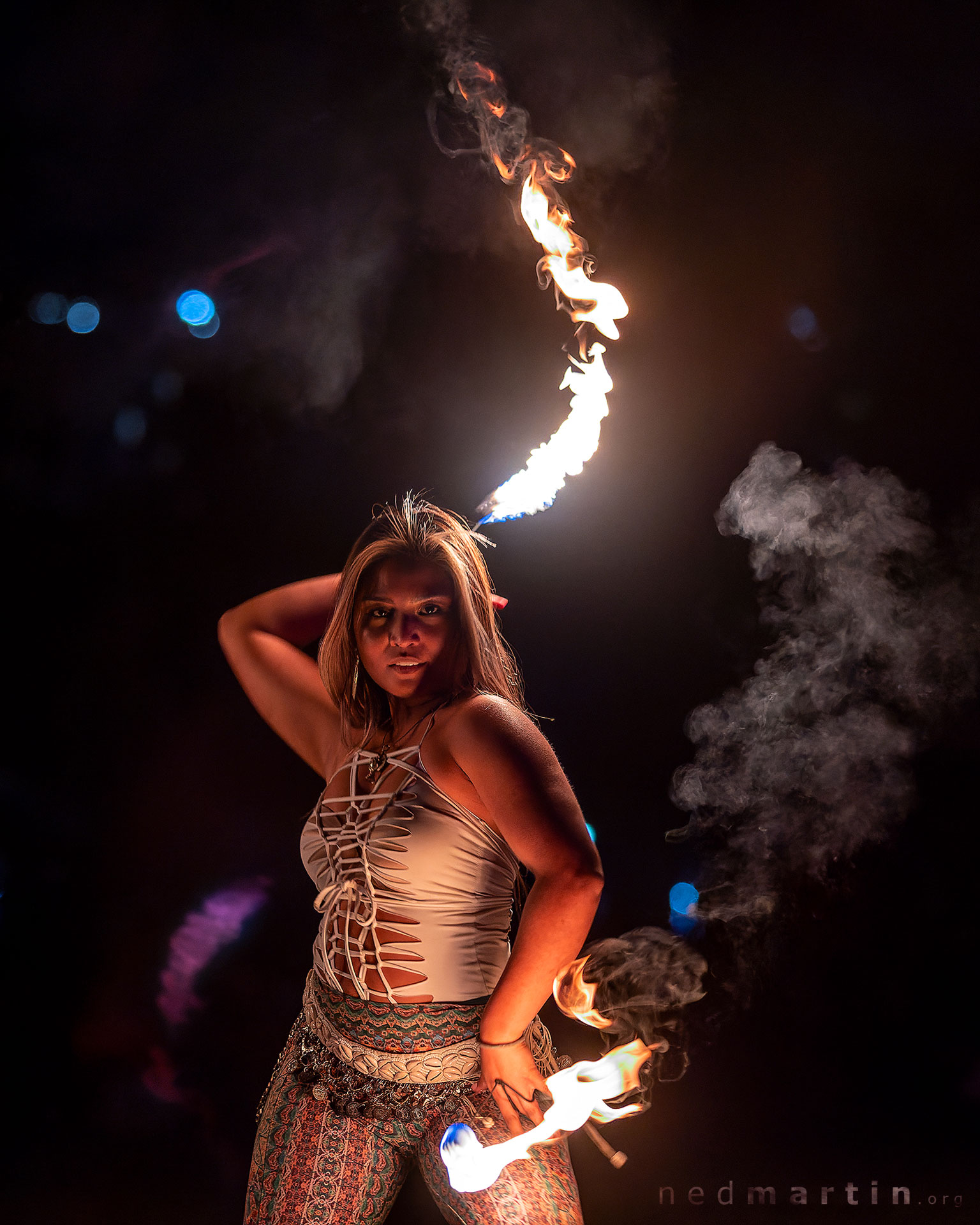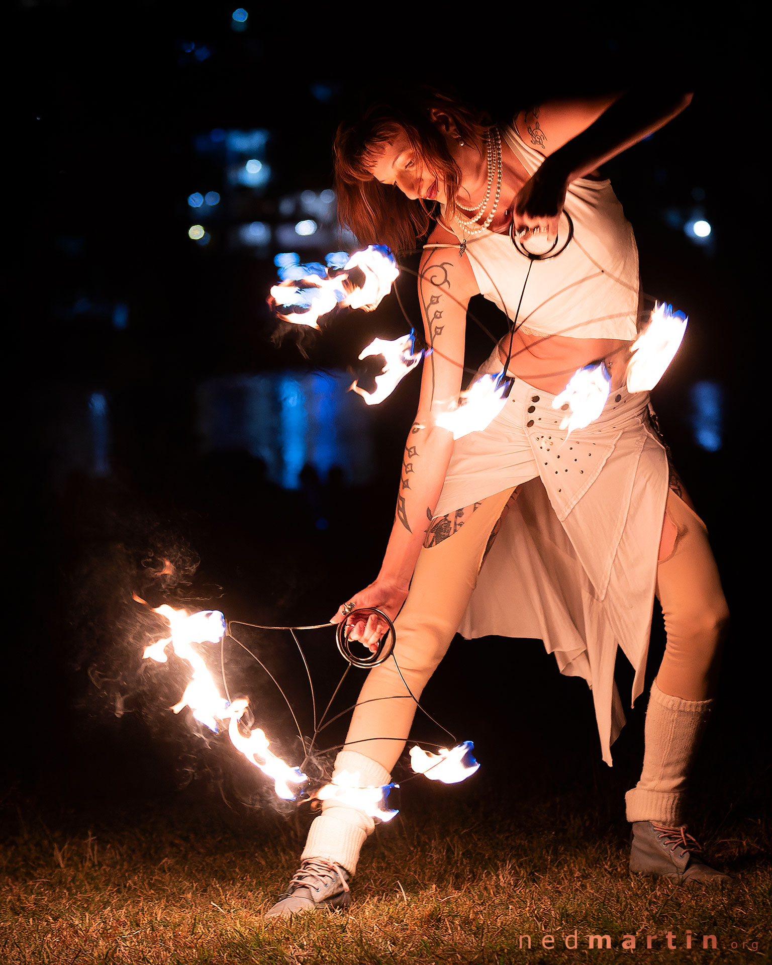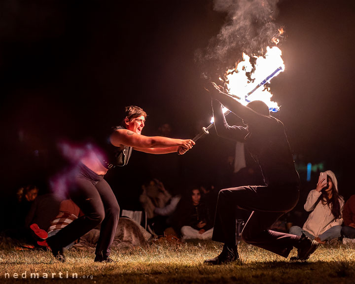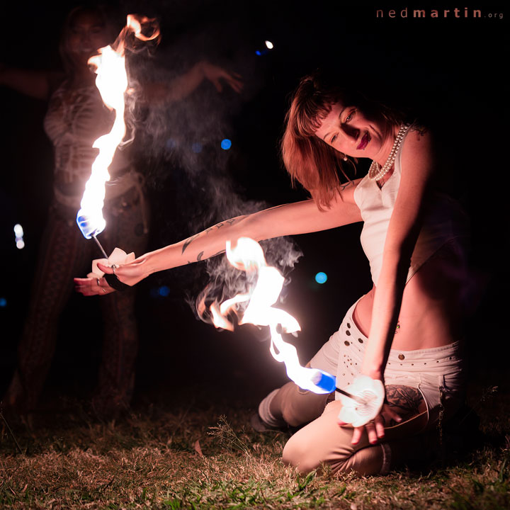 Bronwen, Chloe and I drove to Woolworths, bought a pesto pasta dinner, then continued on to Orleigh Park where we ate our pasta dinner while watching the West End Fire Festival. I took some photos, as usual. It was quite cold.