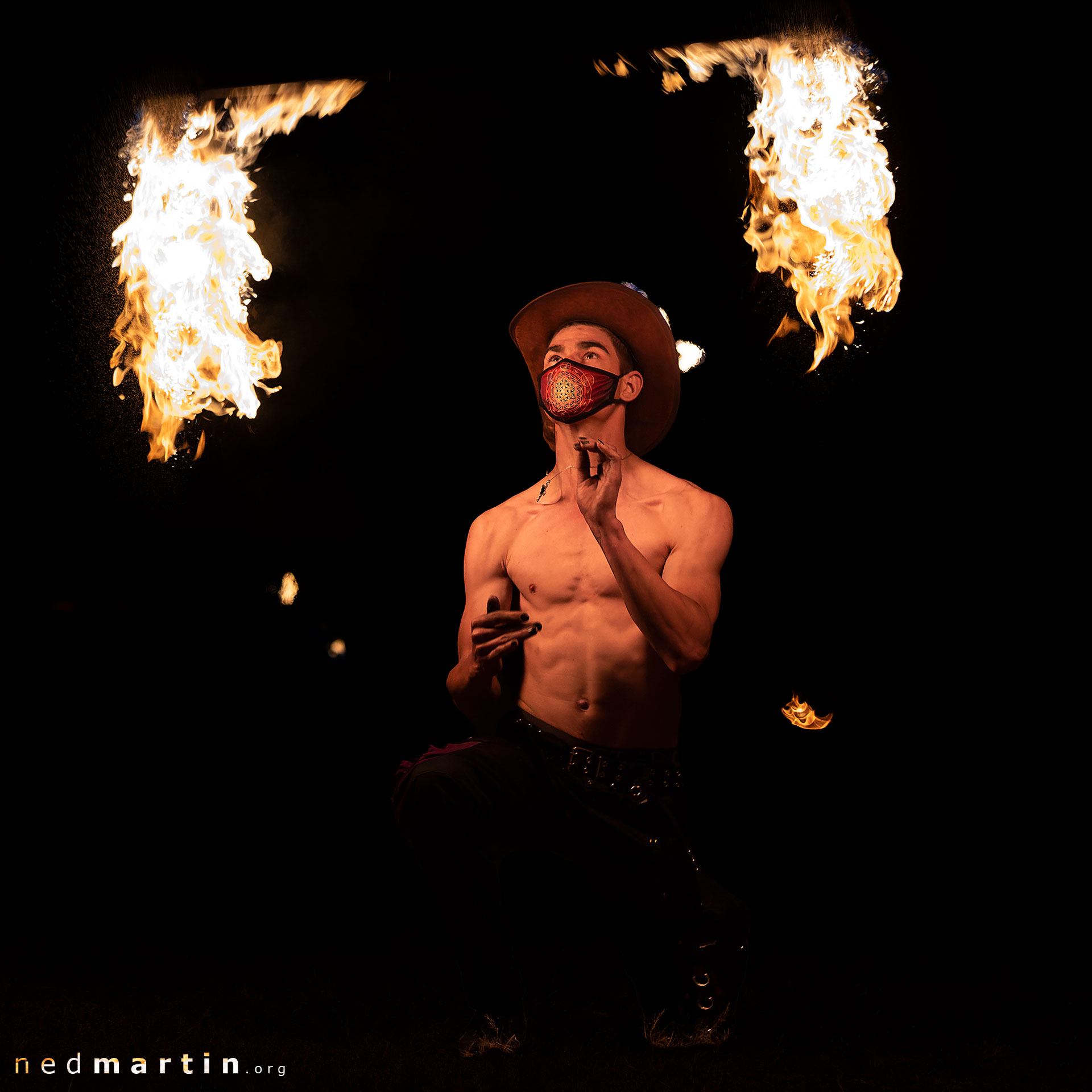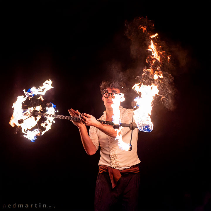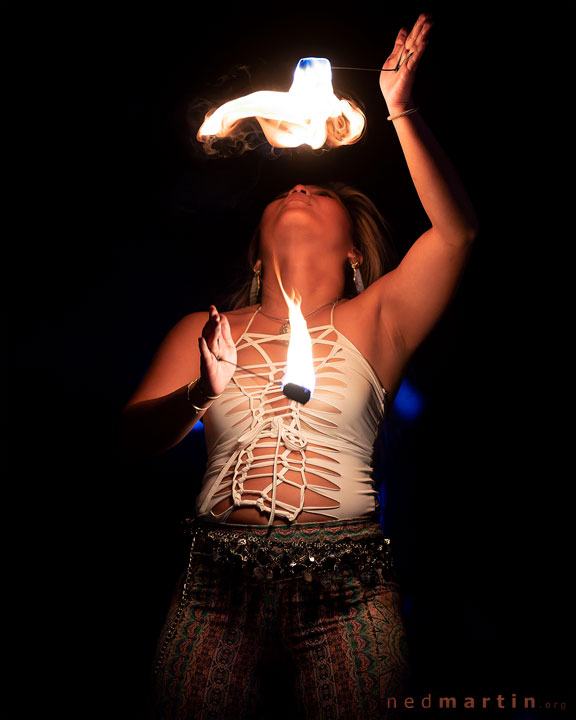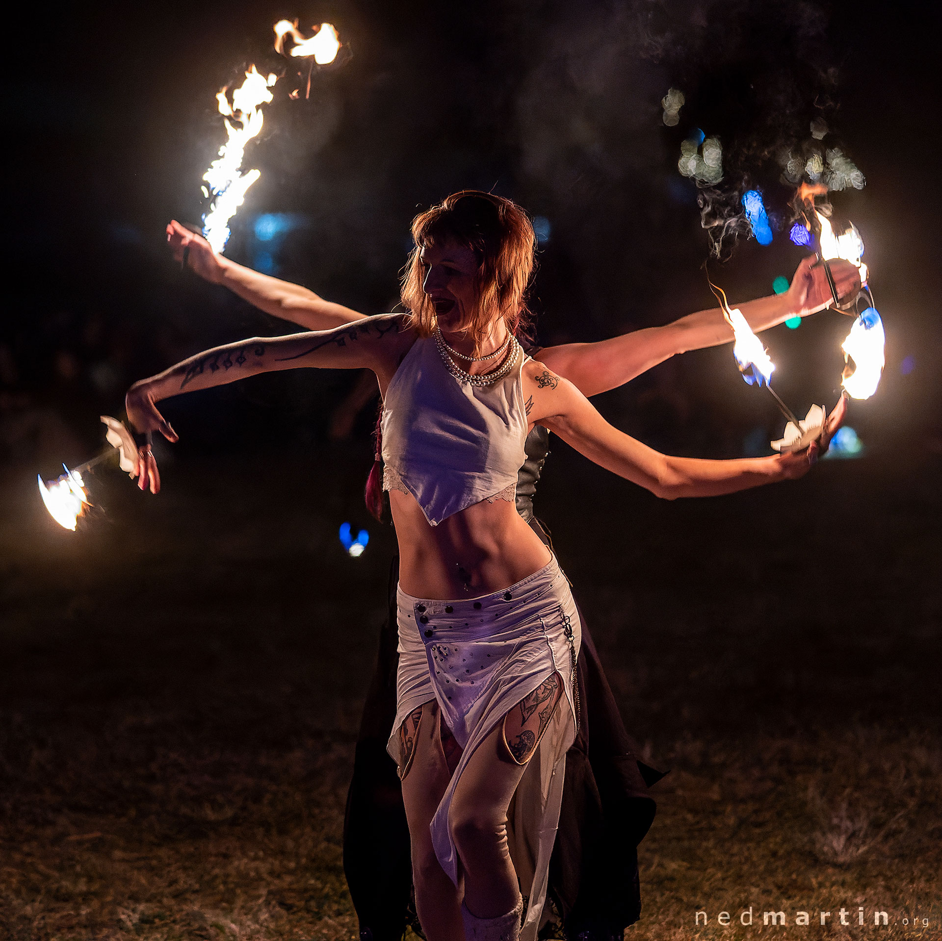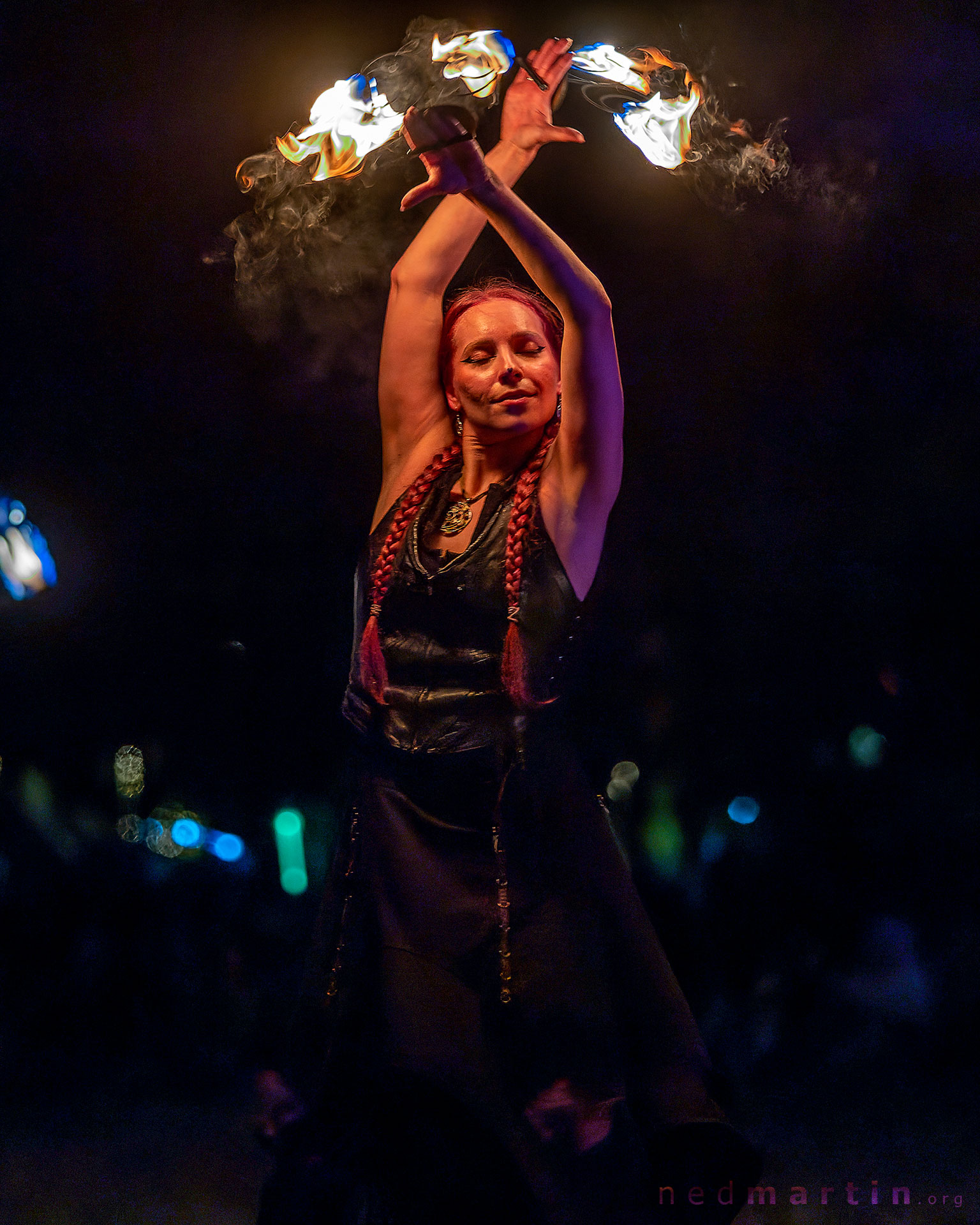Bronwen, Chloe and I drove to Woolworths, bought a pesto pasta dinner, then continued on to Orleigh Park where we ate our pasta dinner while watching the West End Fire Festival. I took some photos, as usual. It was quite cold.