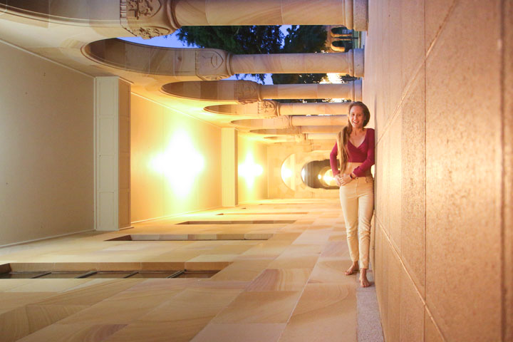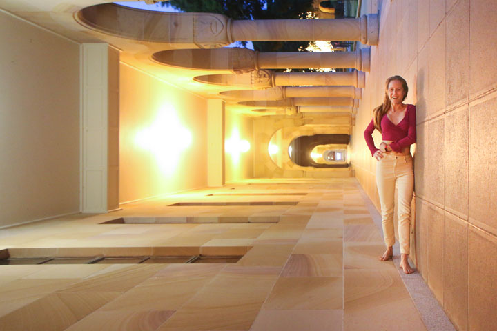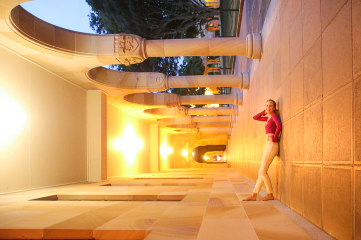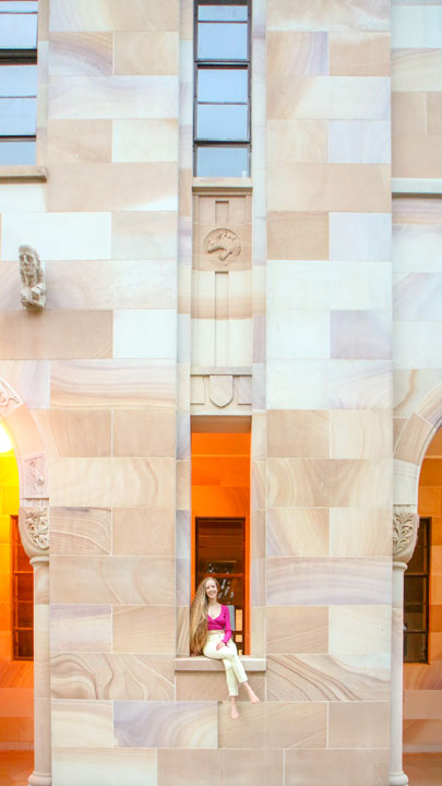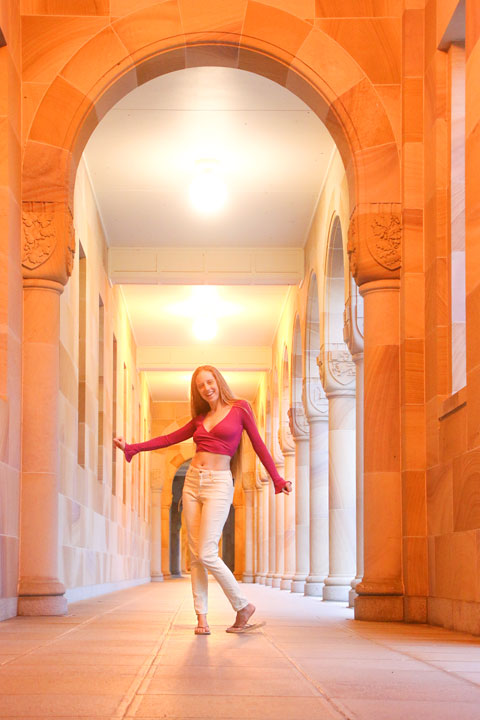Bronwen and I drove to the Eleanor Schonell Bridge (Green Bridge) and walked across it to UQ. We went for a bit of a wander around, taking some photos in the Great Court and one of the nearby empty hallways, until it got dark.