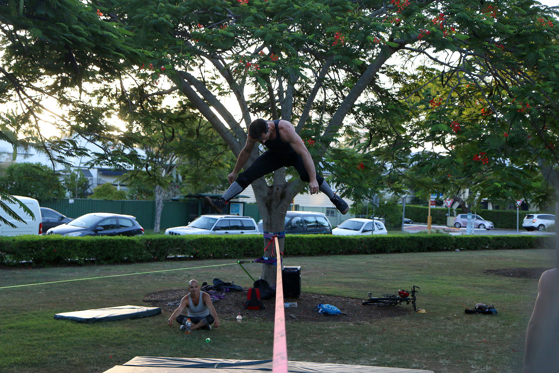 After grabbing a drink from South Bank, Bronwen and I drove to New Farm Park, where Bronwen did some slackline practice and I took some photos before it got too dark.