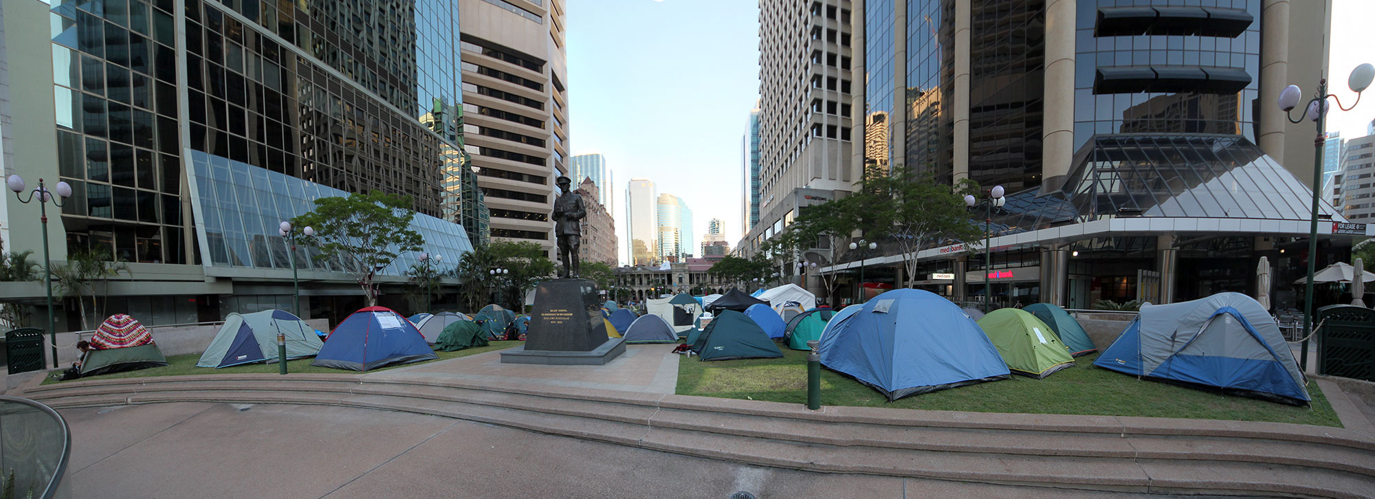 After shopping, and lunch at Hungry Jack’s, we walked up to Roma Street and watched the zombies preparing for their annual walk, and then chased them to the valley, taking photos, then had a look at the Occupy Brisbane camp.