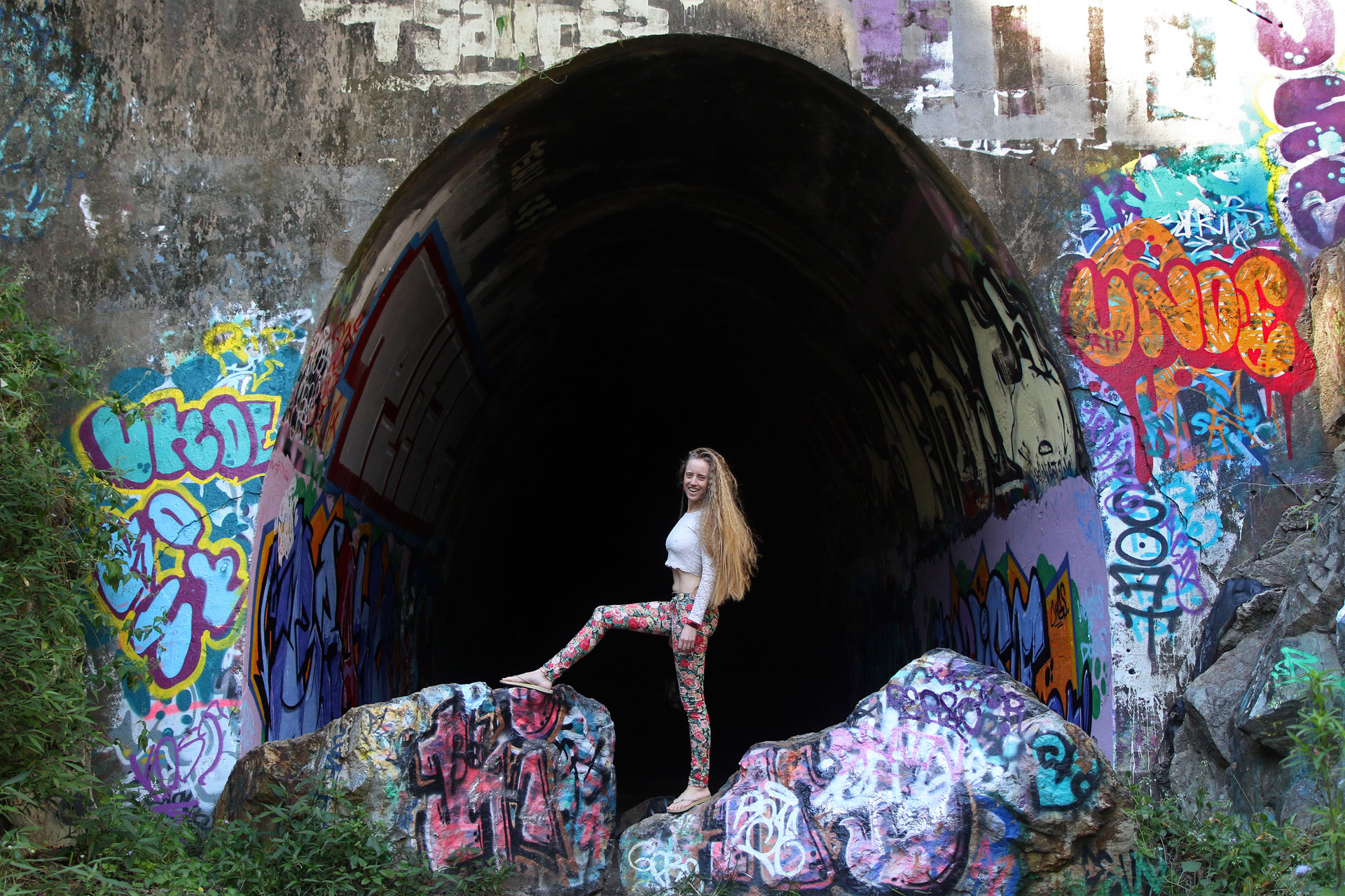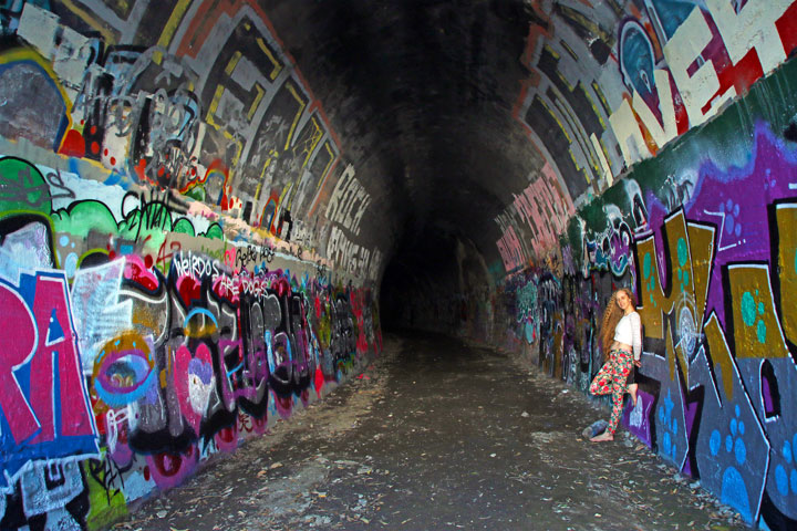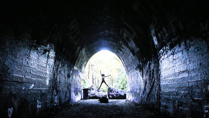 Bronwen, her frizzy hair, and I drove down to Ernest Junction Tunnel. I’d recently heard about it on Facebook and had been wanting to go have a look, and now that our overlords have graciously rewarded us for our servile bootlicking by allowing us to travel as far as 50 kilometres from our homes, and considering that it seems to be exactly 50 kilometres from home if I use a particularly blunt pencil and some slightly-stretchy string to draw my circle on the map, I decided it would be a good time to go have a look.