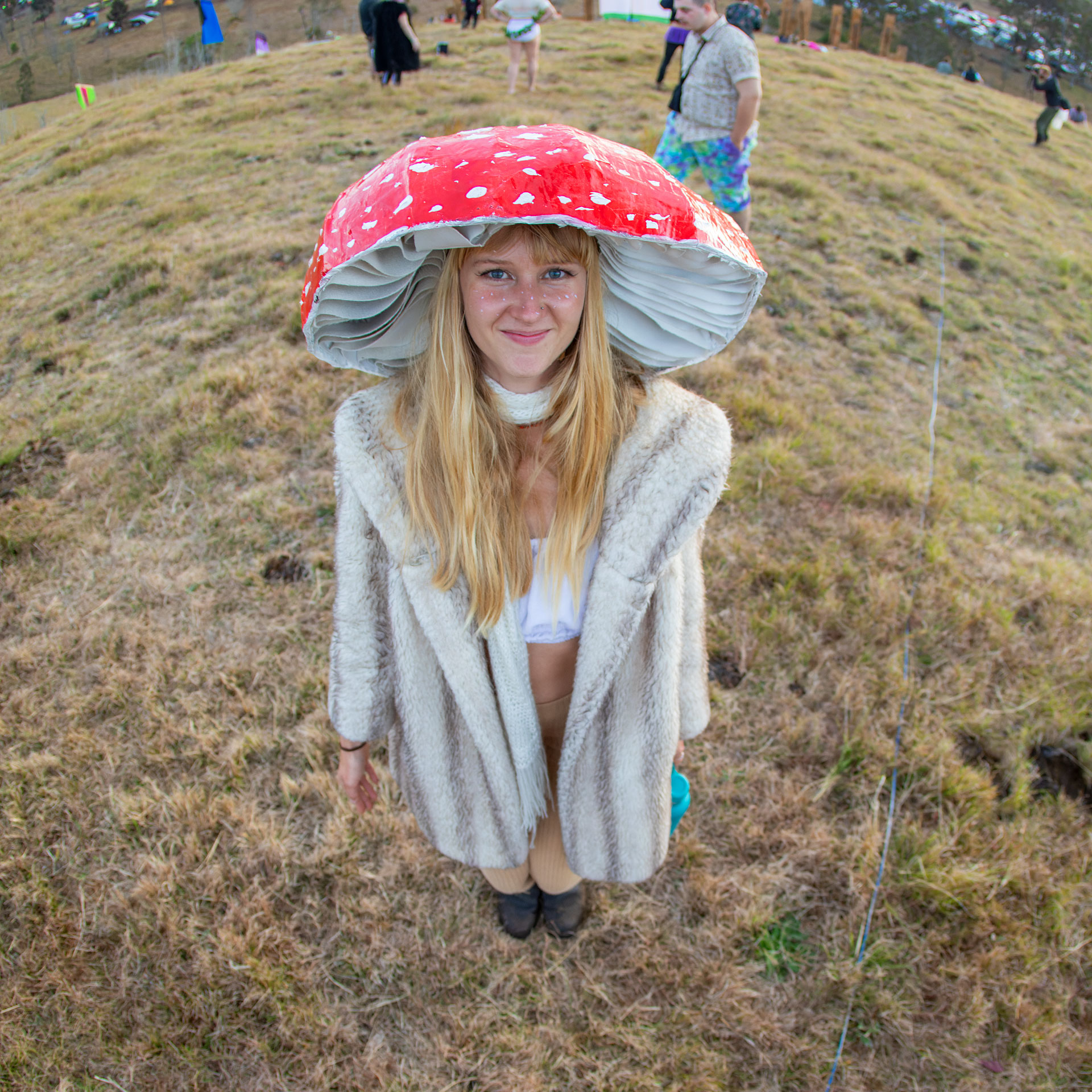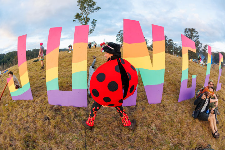 The rain eased off during the day, and we even had an almost-sunset on the hilltop, complete with festival-hilltop-y things like hooping, festival fairies, mushroom people and an excellent ladybug-lady.