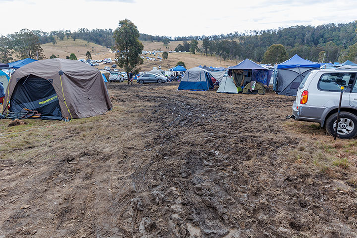Being only human myself, I was pretty dirty after last night’s emergency tarp re-erection, so when I met my camping-neighbour clean and fresh on their way back from a nice hot shower I slid arduously through the mud in my thongs to the shower block, only to find that all the showers had been locked while I was on my way there (apparently they were worried that the rain would stop them getting water trucks in, so were saving the water for more important things like drinking and flushing toilets.)