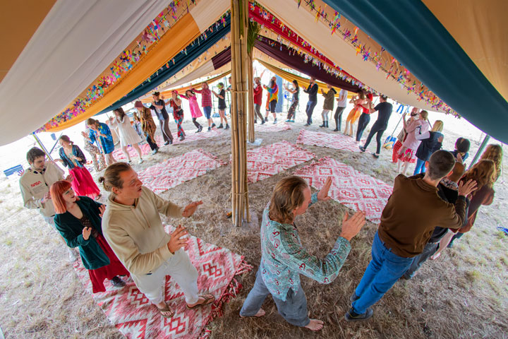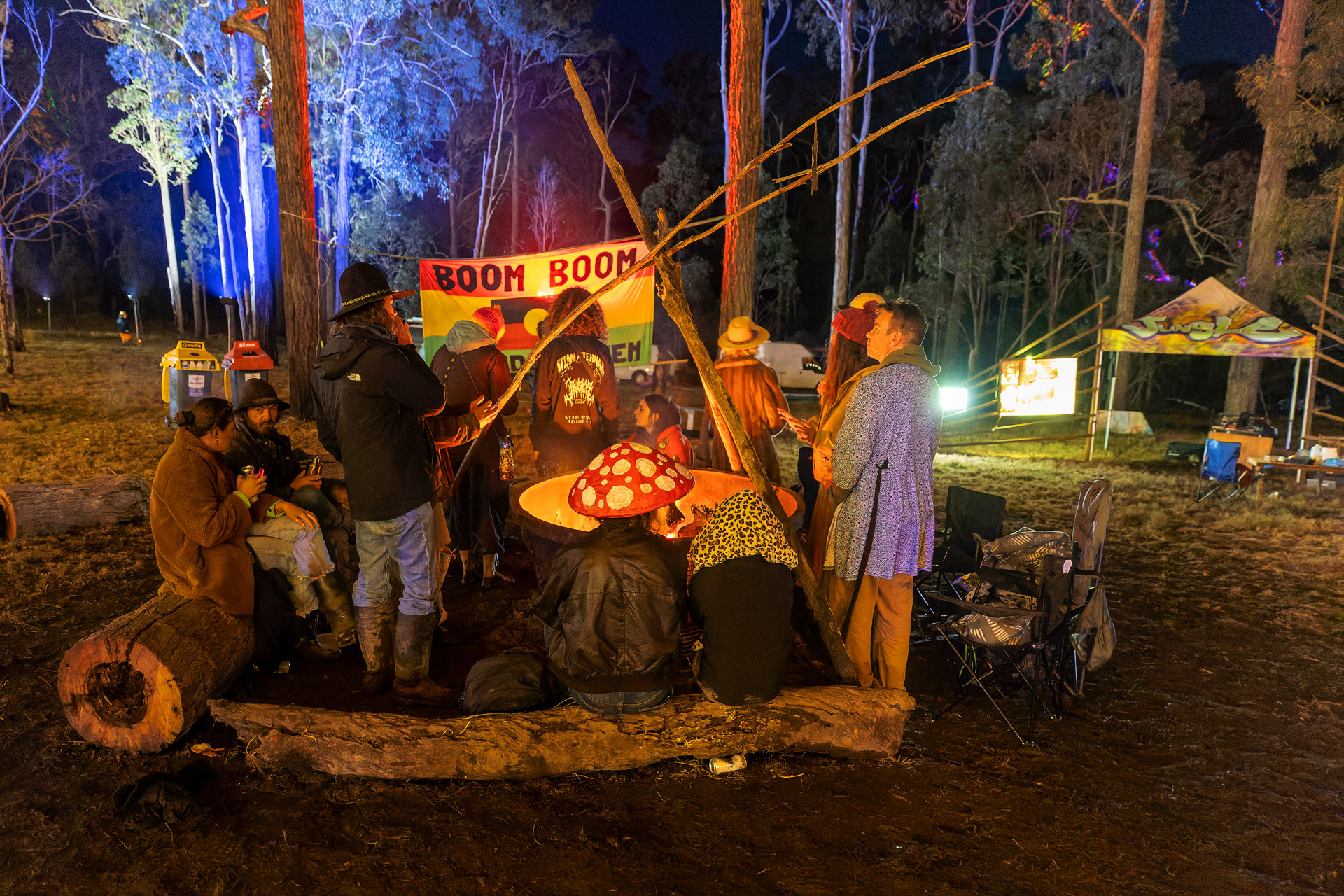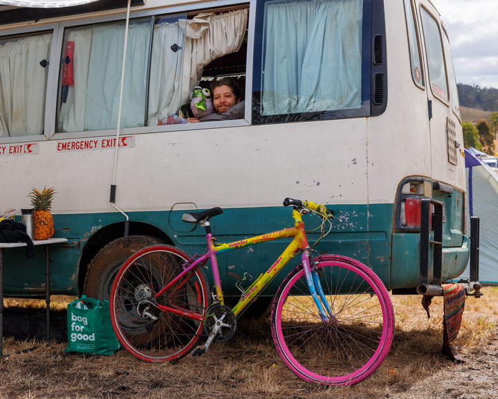 The festival was pretty quiet—it didn’t really start properly until tomorrow—so I wandered around for a while trying to get a feeling for where things were, taking a few photos, and then went to bed and had a nice sleep-in, in readiness for a few late nights. It was lovely cool weather: not too cold, but cold enough that the fires around the festival were inviting, and my camp bed comforting—perfect weather for camping.