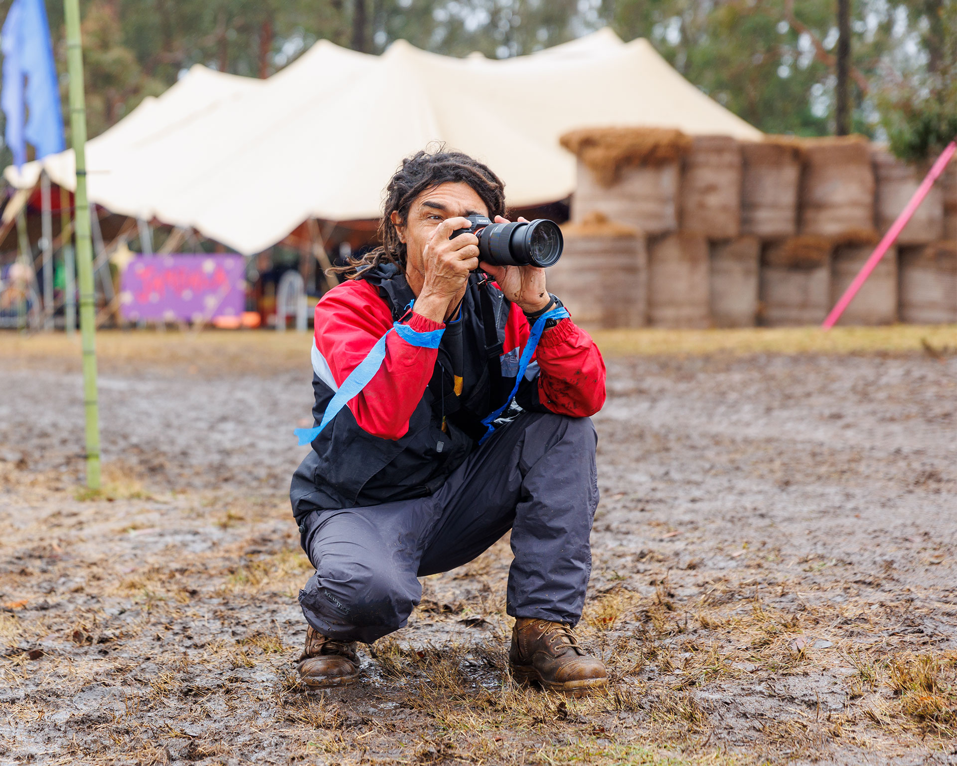 The rain continued all night and all day, and the festival became an exciting mudfest—one never quite knew when one might suddenly begin an unexpected slide—turning the boring act of walking around with lots of expensive and fragile camera gear into a new and exciting adventure (though all the sensible people who wore gumboots and didn’t carry camera gear seemed to be able to stick to their boring normal-person-style walking so perhaps it was just me?)