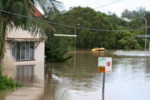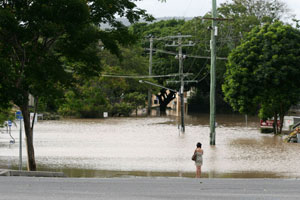 Bronwen and I drove in to the city and walked around having a look at the flooding, and the preparation for the flooding in Queen Street Mall, amongst other places. Bronwen managed to get into her work building to get some stuff she’d left there.