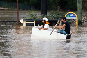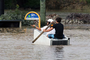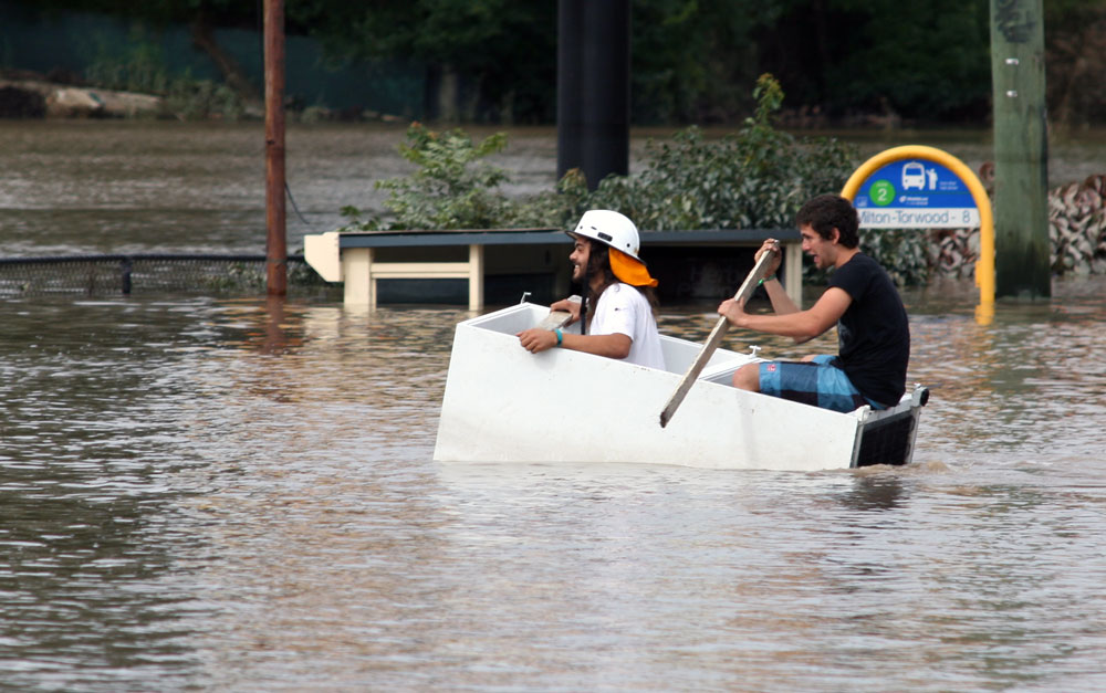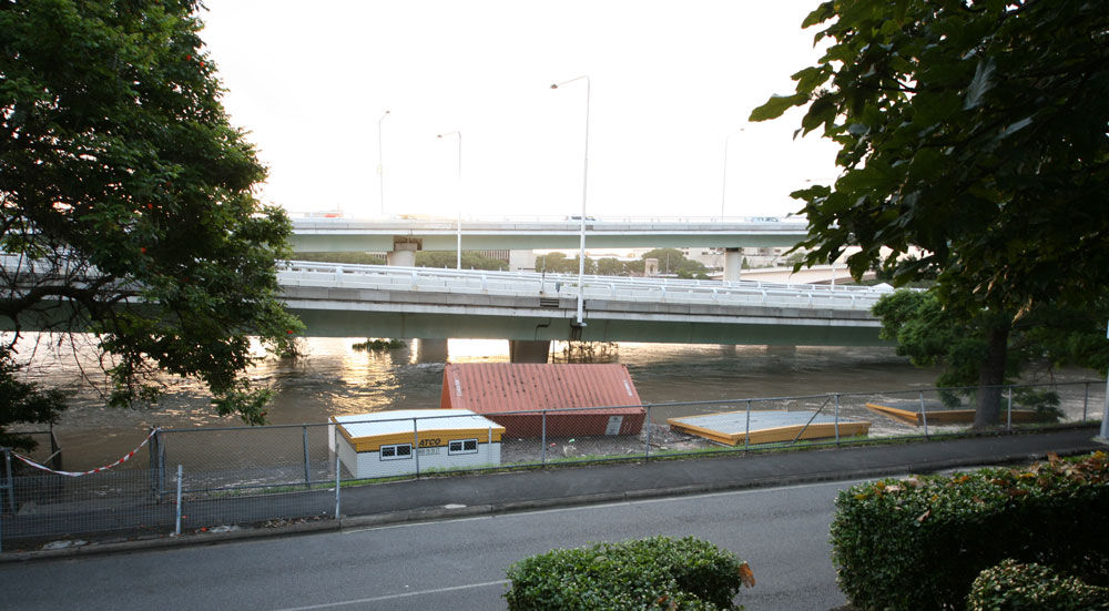 I carried the last of the things I was evacuating out of my place–carrying them above my head, the water now up to my shoulders–and drove them to Maz’s. Maz and I went for a drive to Kangaroo Point and watched a lot of boats, houses, pontoons, and other random debris, float down the river.