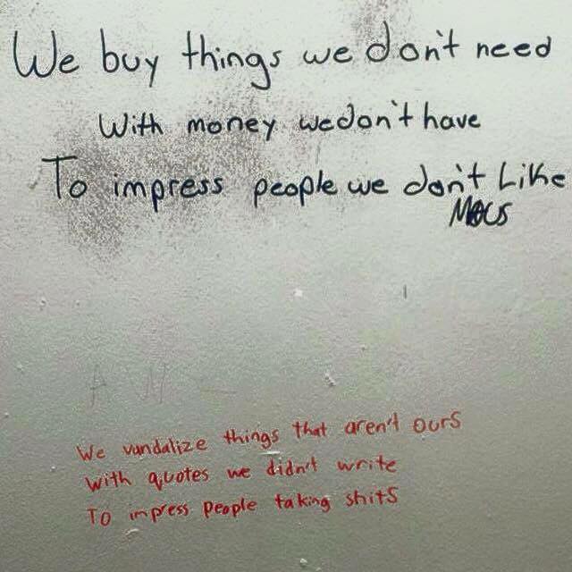 We vandalize things that aren’t ours with quotes we didn’t write to impress people taking shits.
