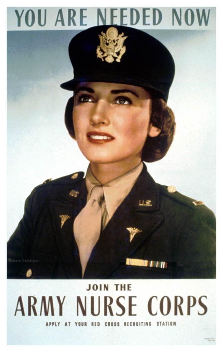 Poster Text: YOU ARE NEEDED NOW / JOIN THE / ARMY NURSE CORPS / APPLY AT YOUR RED CROSS RECRUITING STATION.